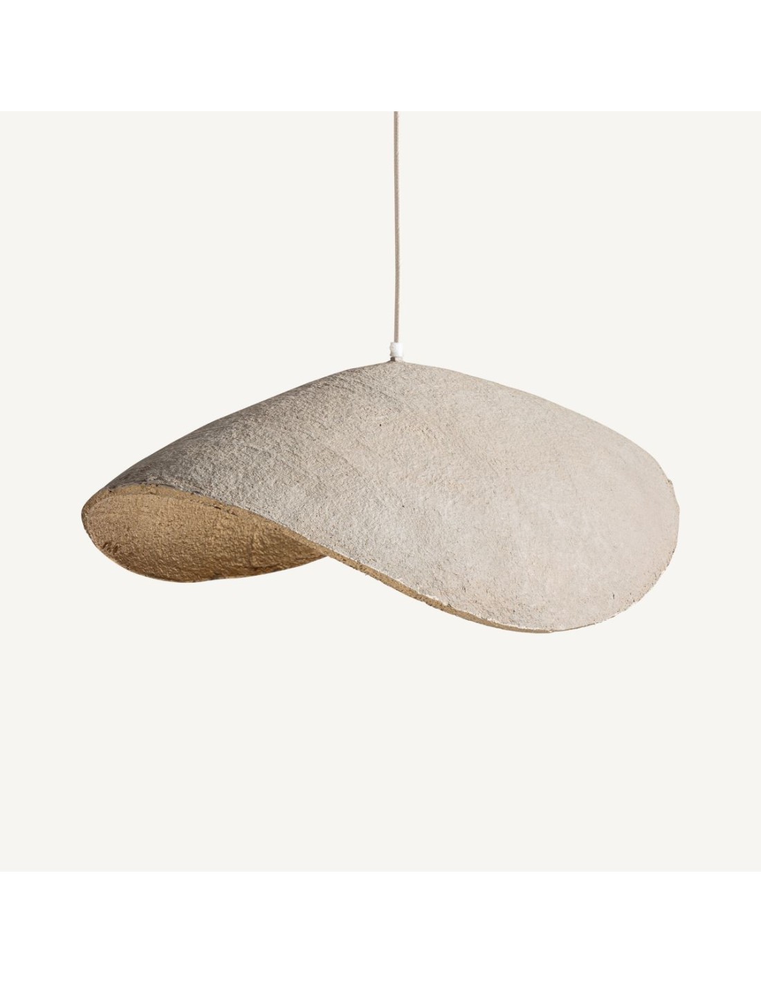 Lámpara colgante de diseño contemporáneo, fabricada en hierro color gris combinada con papel maché en acabado bronce, perfecta para aportar estilo y calidez a cualquier ambiente.