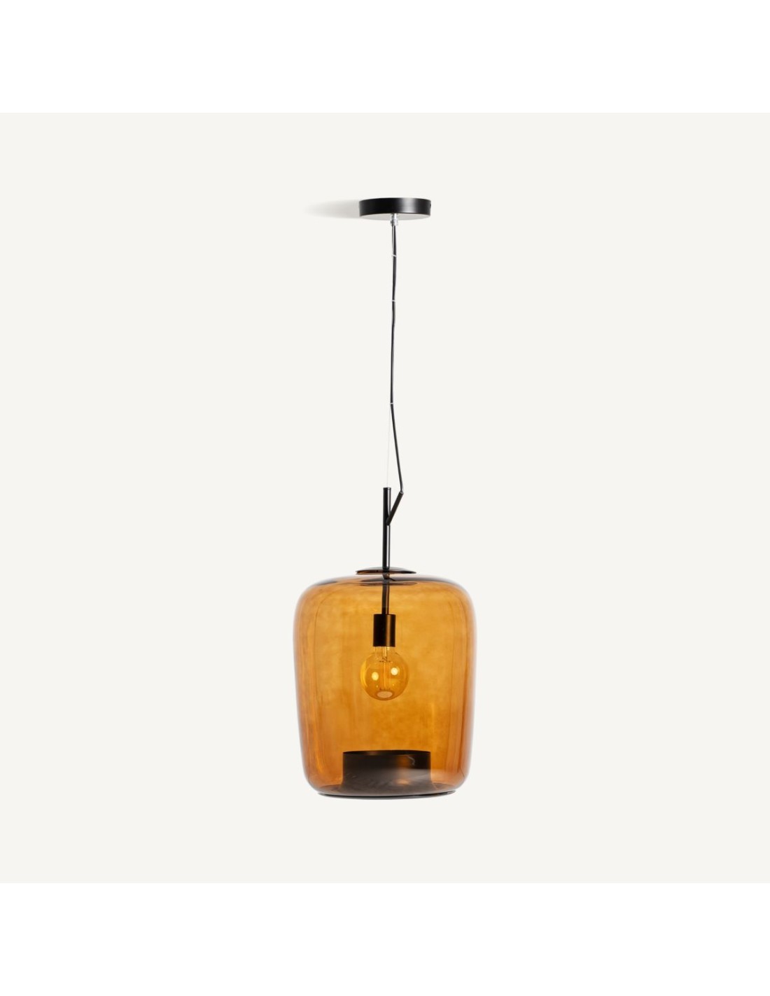 La lámpara de colgar Cubik de Vical Home es una pieza esencial para iluminar y decorar ambientes contemporáneos con estilo y sofisticación. Fabricada en cristal de alta calidad color ámbar con un acabado traslúcido, esta lámpara ofrece una iluminación cálida y envolvente que crea ambientes acogedores y modernos.