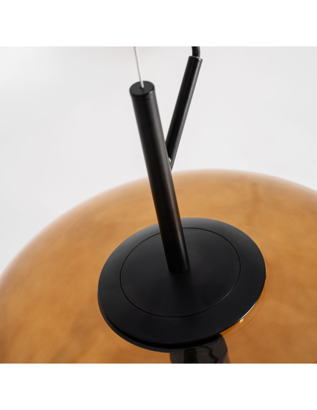 Lámpara de colgar Cubik de estilo contemporáneo, fabricada en cristal color ámbar con acabado traslúcido. Diseño elegante y moderno que aporta calidez y luz ambiental a cualquier espacio.
