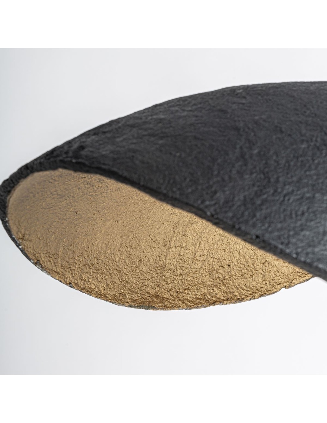 La Lámpara de Colgar en Hierro Negro y Papel Maché Bronce de VICAL HOME es una pieza única que fusiona materiales industriales y artesanales para un diseño sofisticado y funcional. Su estructura de hierro en color negro aporta robustez y modernidad, mientras que el acabado en papel maché bronce añade calidez y textura.
