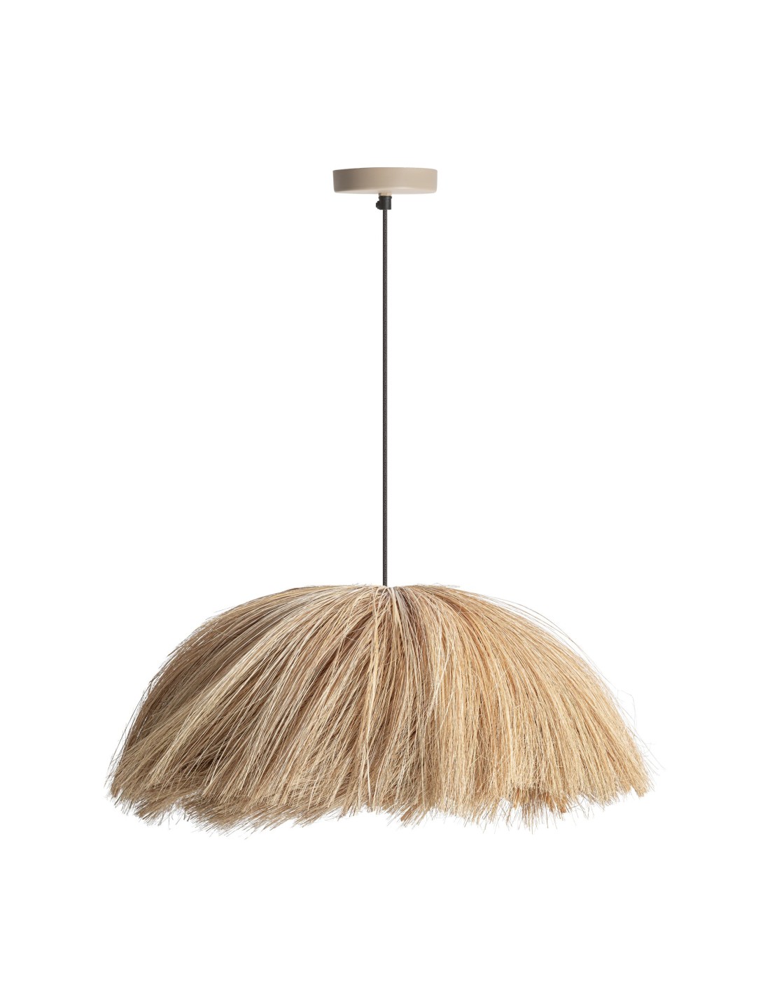 Descubre esta lámpara colgante de Vical Home, fabricada artesanalmente con hierba marina en color marrón claro y estructura de hierro negro. Su diseño aporta una atmósfera acogedora, serena y natural, perfecta para crear espacios con personalidad.