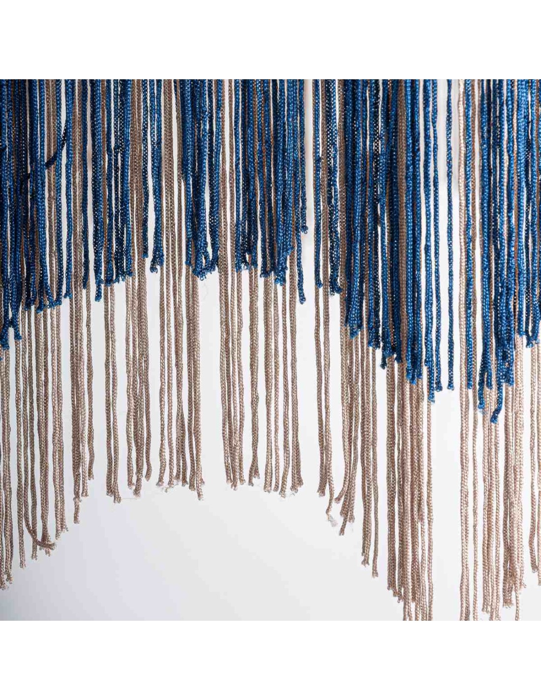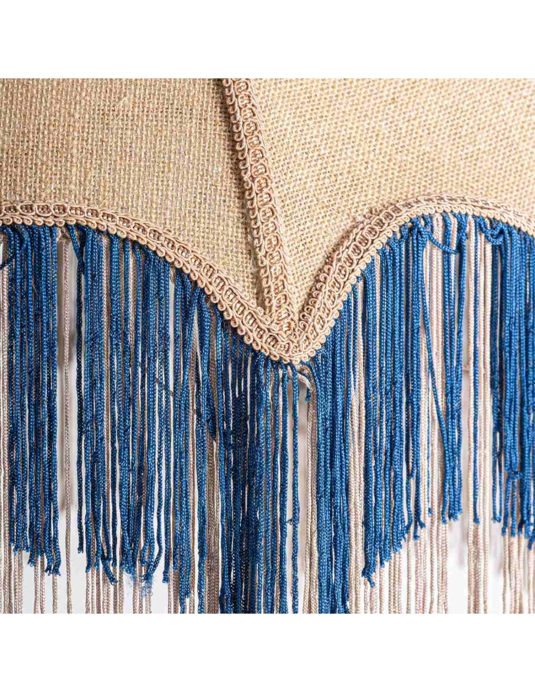 🎨 Materiales: Yute natural beige + Acrílico azul + Hierro marrón