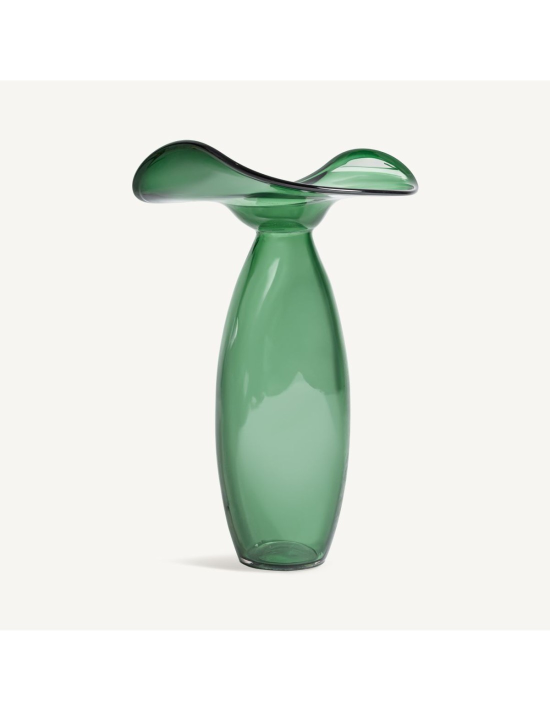 El Jarrón Akari de Vical Home es una pieza contemporánea que destaca por su elegancia y su acabado en vidrio verde traslúcido. Su diseño artesanal y sus dimensiones (37 cm de ancho, 32 cm de fondo y 55 cm de alto) aportan presencia y sofisticación a cualquier espacio.
