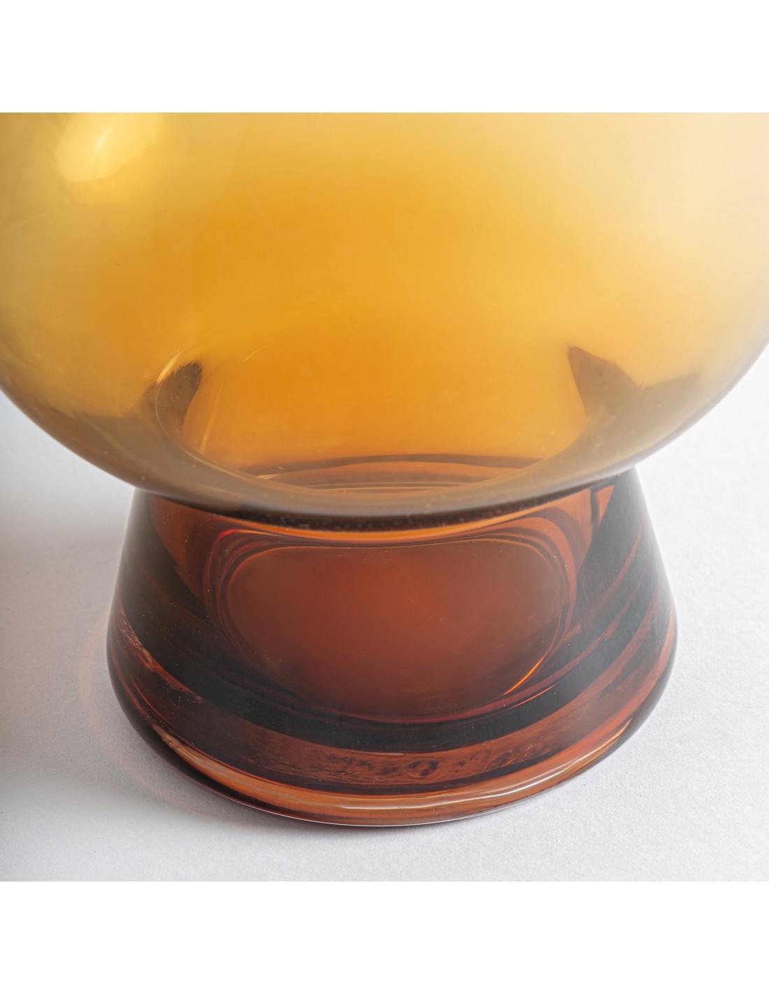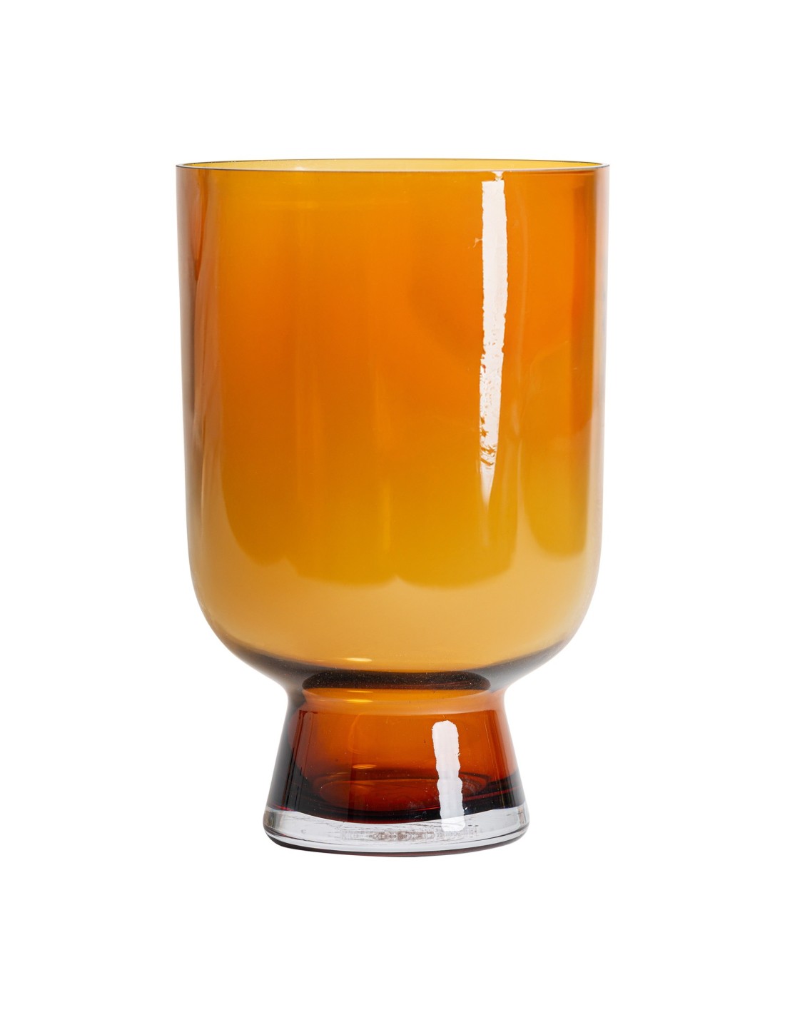 Fabricado con vidrio de alta calidad, su tonalidad ámbar y acabado brillante permiten que la luz se filtre suavemente, creando atmósferas acogedoras y sofisticadas. Ideal para usarlo con flores frescas o secas, o como pieza decorativa independiente que realza la decoración tradicional y moderna.