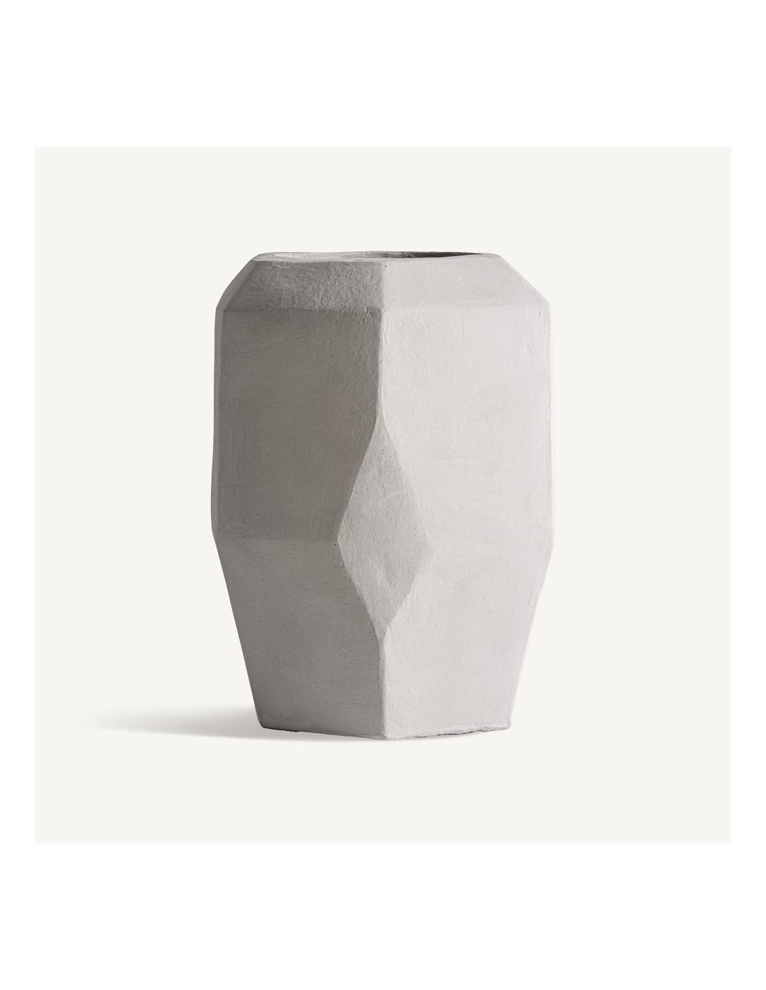 Su acabado gris neutro aporta equilibrio, sobriedad y modernidad, adaptándose a estilos minimalistas, nórdicos, industriales o mediterráneos. Es perfecta para decorar salones, recibidores, terrazas o jardines, ya sea como macetero para plantas naturales o artificiales o como elemento decorativo independiente.