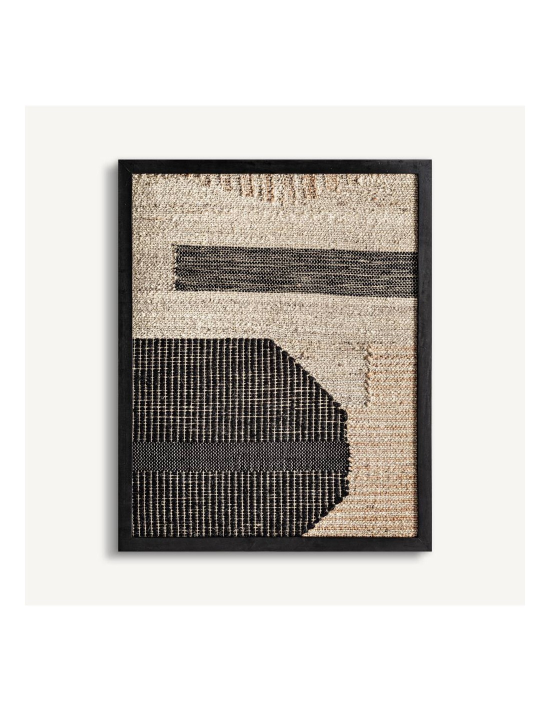 Elegante cuadro decorativo fabricado en madera de mango en color negro, combinado con yute beige. Ideal para aportar estilo natural y moderno a cualquier espacio de tu hogar. Medidas: 80 cm (ancho) x 3 cm (fondo) x 100 cm (alto).