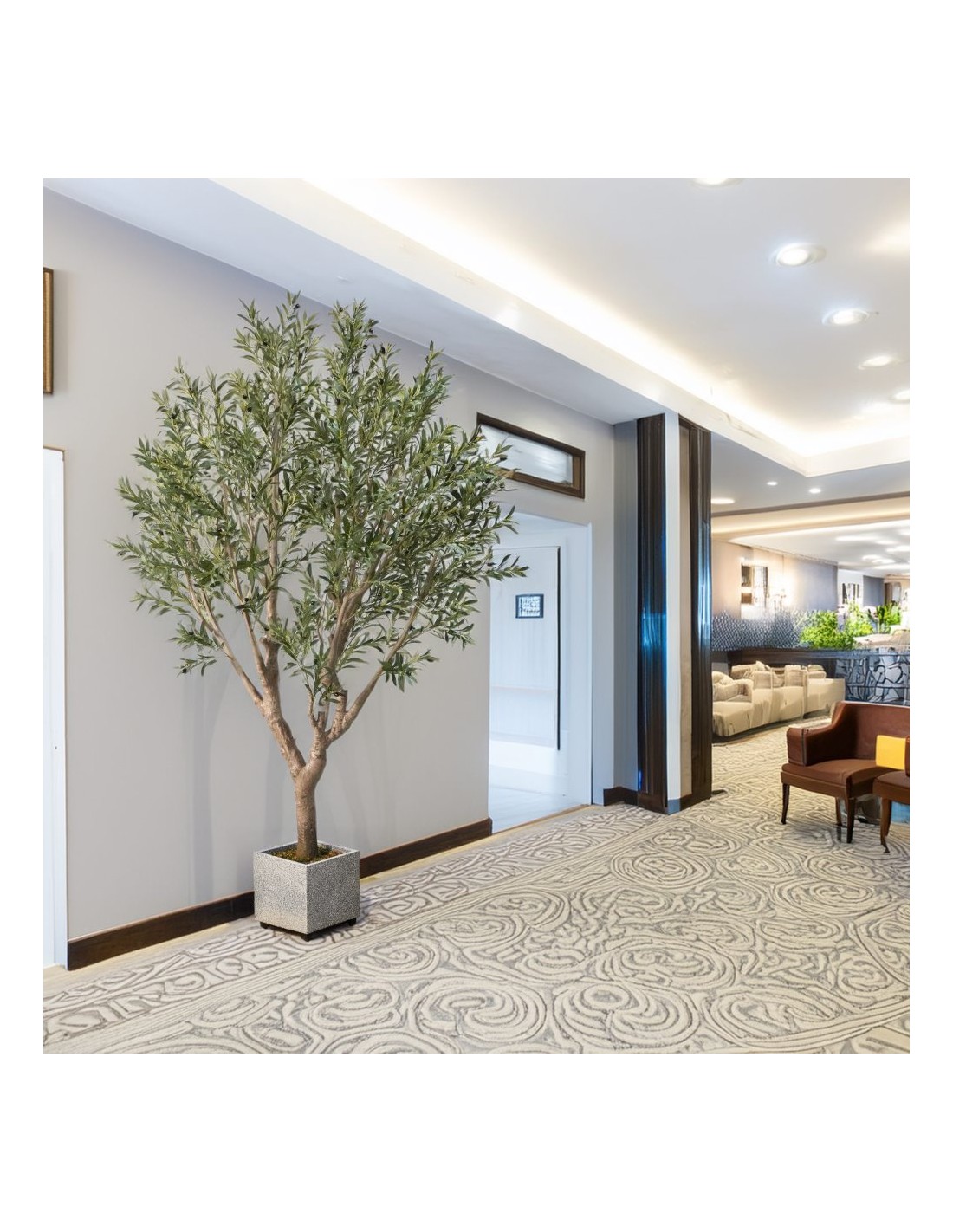 Perfecto para decoración de interiores y exteriores cubiertos, este olivo se adapta a hogares, oficinas, restaurantes, hoteles y espacios comerciales que buscan un elemento distintivo y sofisticado. Su altura de 250 cm lo convierte en un árbol decorativo imponente, capaz de llenar espacios amplios sin resultar excesivo.