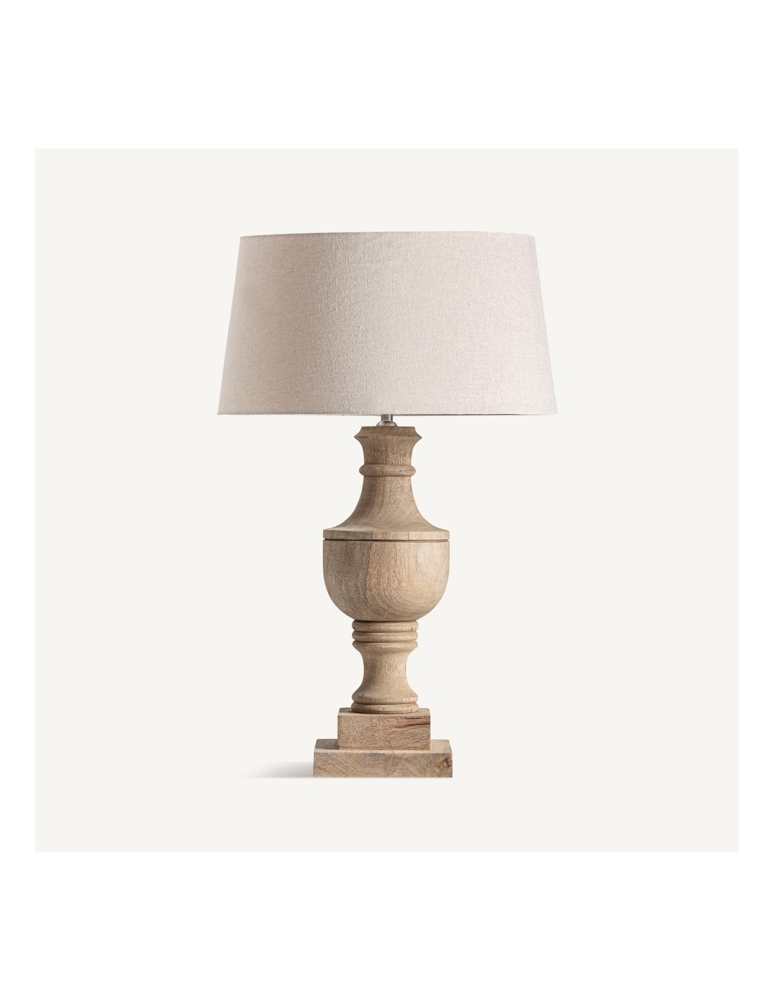 La Lámpara Bamberg de VICAL HOME destaca por su estilo clásico y presencia elegante. Su base en madera de mango aporta naturalidad y resistencia, mientras que la pantalla de algodón beige difunde la luz de manera suave, creando ambientes cálidos y acogedores.