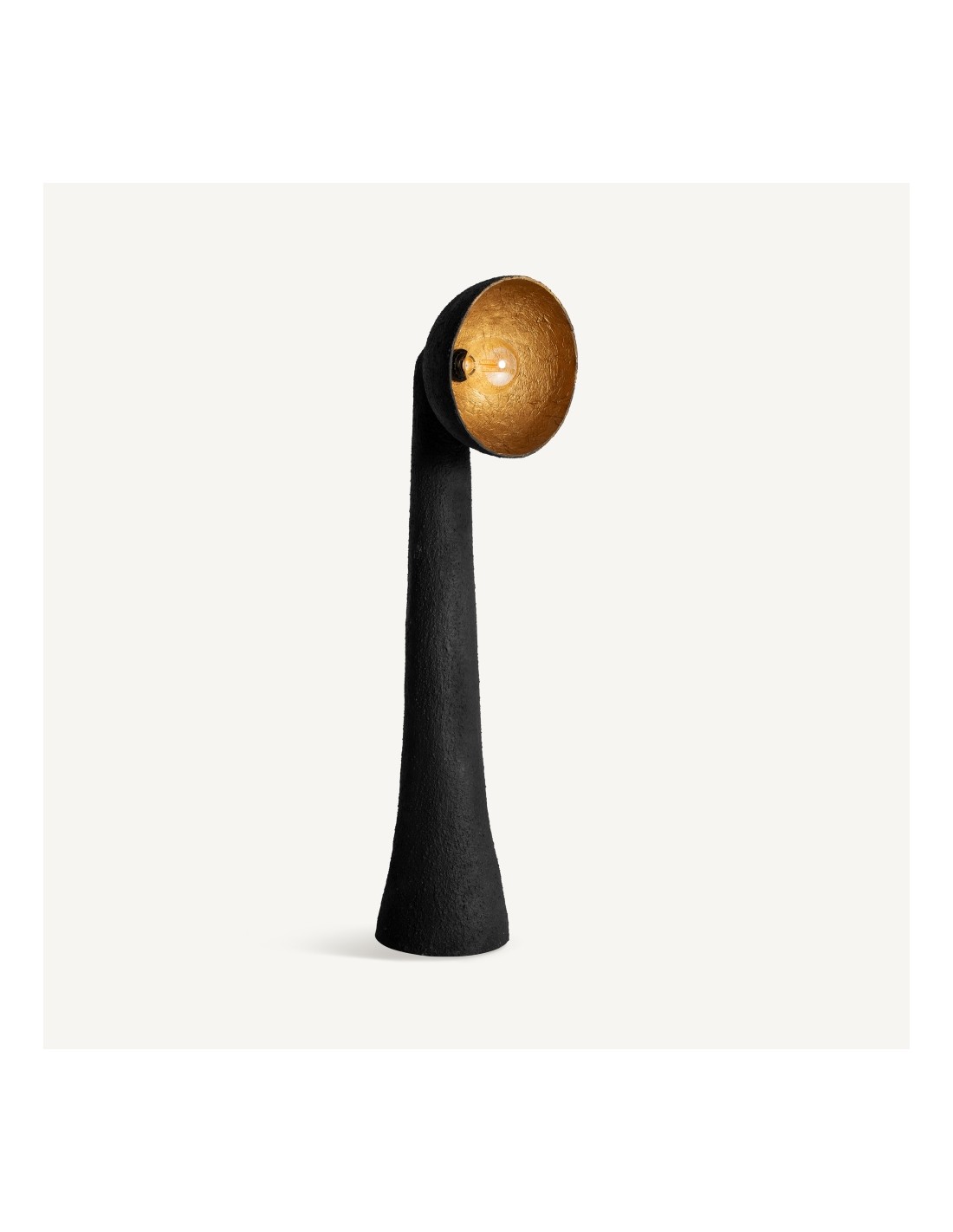 La Lámpara de Pie Lierop de Vical Home es una obra de iluminación contemporánea que destaca por su presencia escultórica y su atrevido contraste de materiales. Fabricada en resina negra de acabado profundo, su silueta moderna aporta personalidad y sofisticación a cualquier ambiente. La pantalla interior en metal dorado potencia la luz cálida, generando un efecto luminoso envolvente y altamente decorativo.