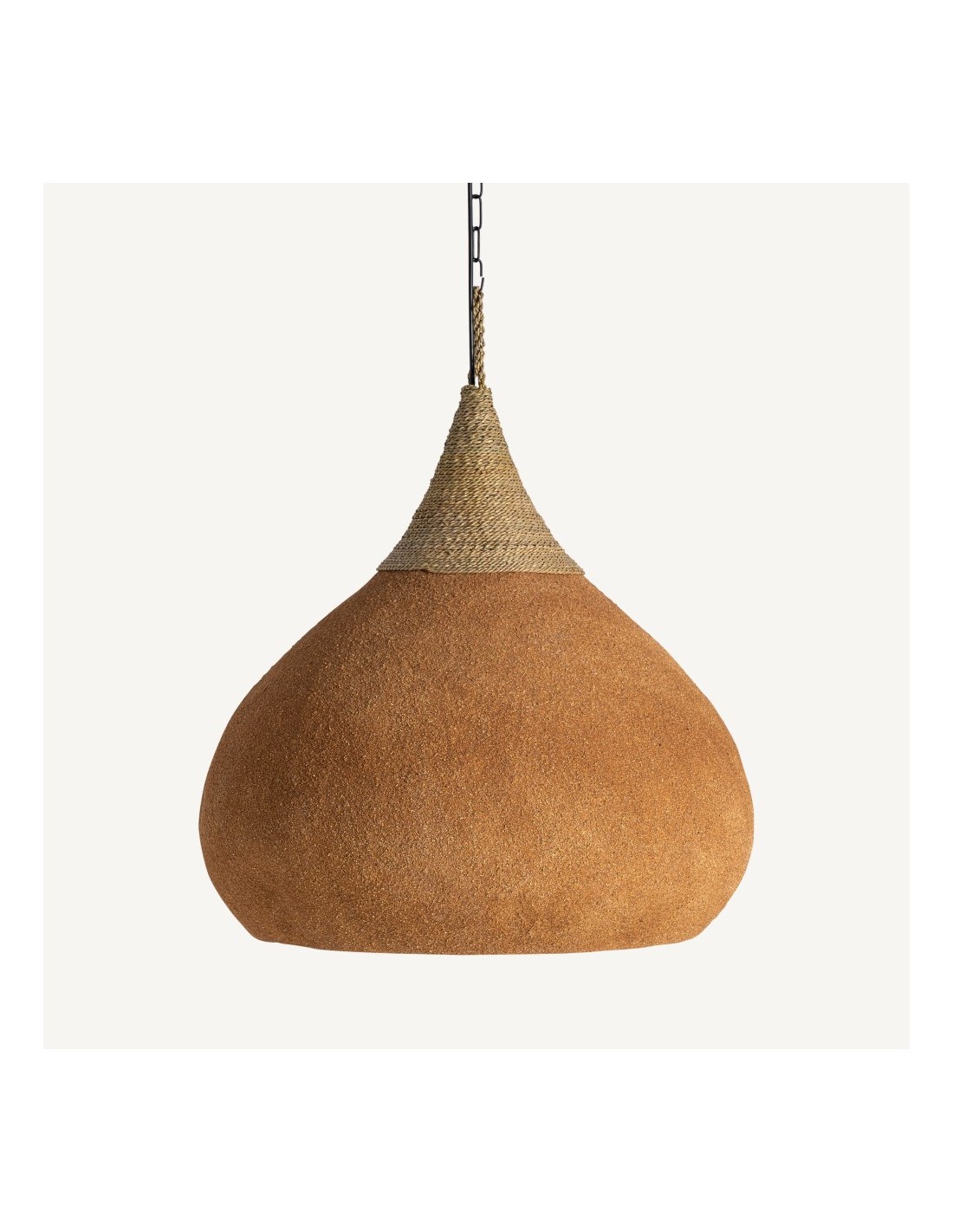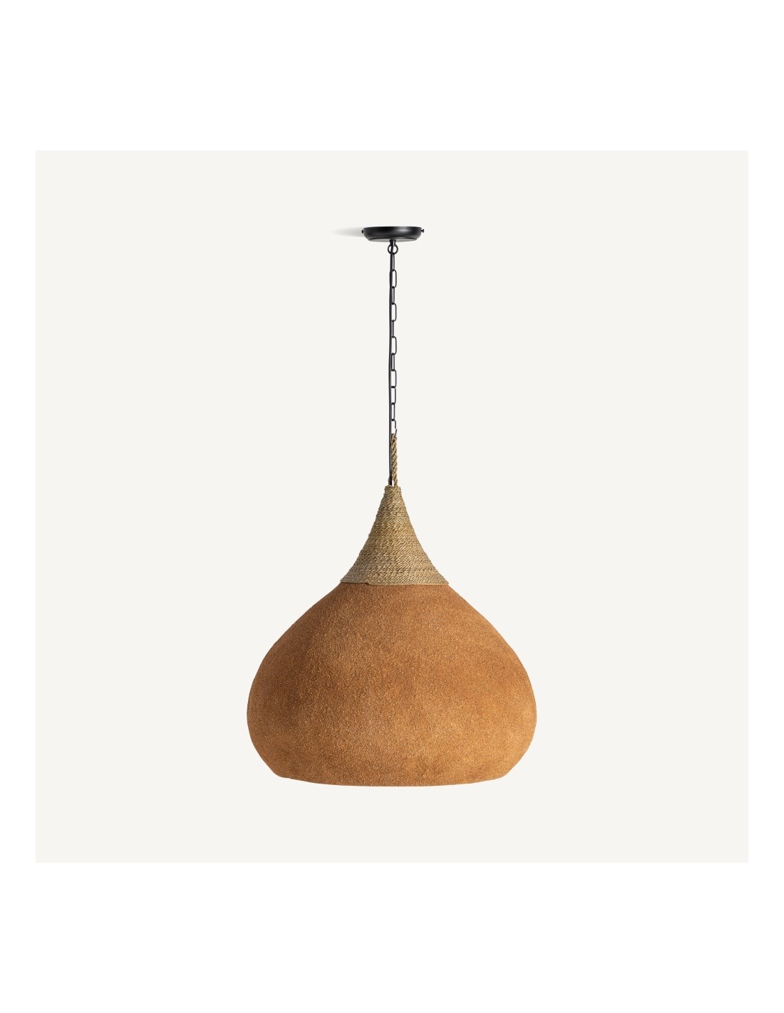La Lámpara de Colgar Swolgen de Vical Home es una pieza de iluminación decorativa diseñada para quienes buscan un toque artesanal, cálido y actual en su proyecto de interiorismo. Realizada en resina en tono terracota, su textura natural y su forma orgánica evocan materiales tradicionales, pero reinterpretados desde un enfoque contemporáneo.