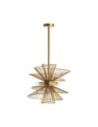 La lámpara de colgar VICAL Home en estilo Art Deco es una pieza luminosa diseñada para aportar sofisticación y elegancia a cualquier estancia. Con una estructura de latón combinada con cristal y aluminio, esta lámpara destaca por su acabado transparente que permite una iluminación amplia y una estética limpia y lujosa.