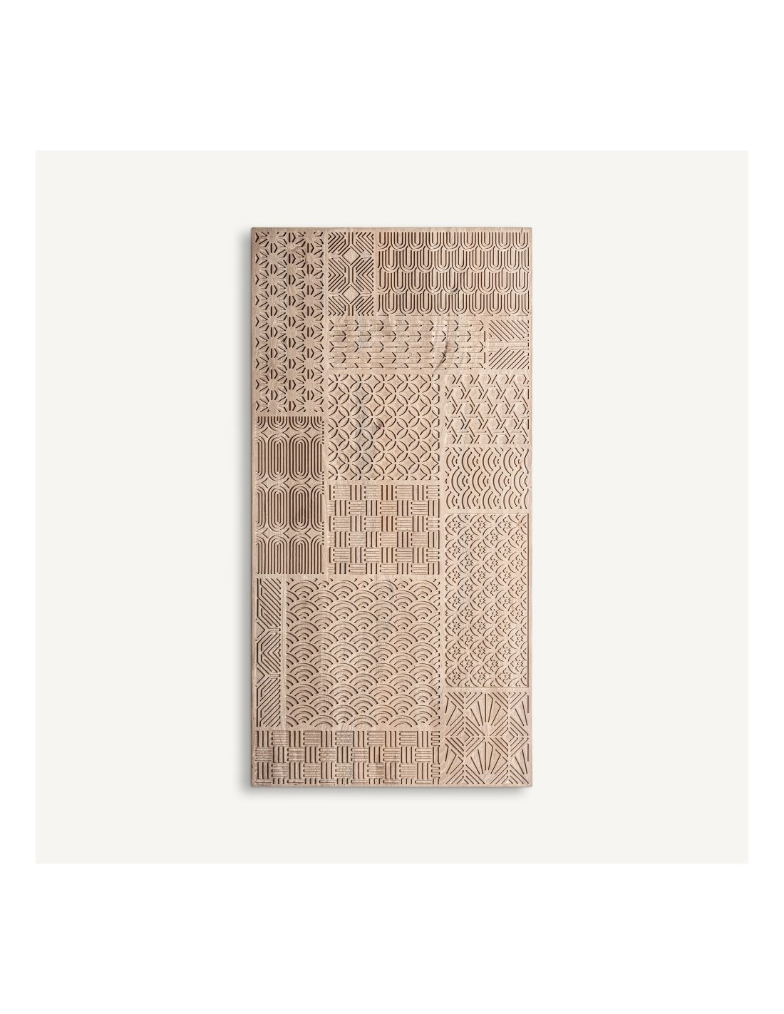 Con unas medidas de 83 x 166 cm, este panel decorativo es ideal para decorar paredes en salones, entradas, dormitorios o zonas de paso, creando un punto focal sin ocupar espacio. Su perfil fino (5 cm de fondo) permite una instalación sencilla y un resultado visual elegante.