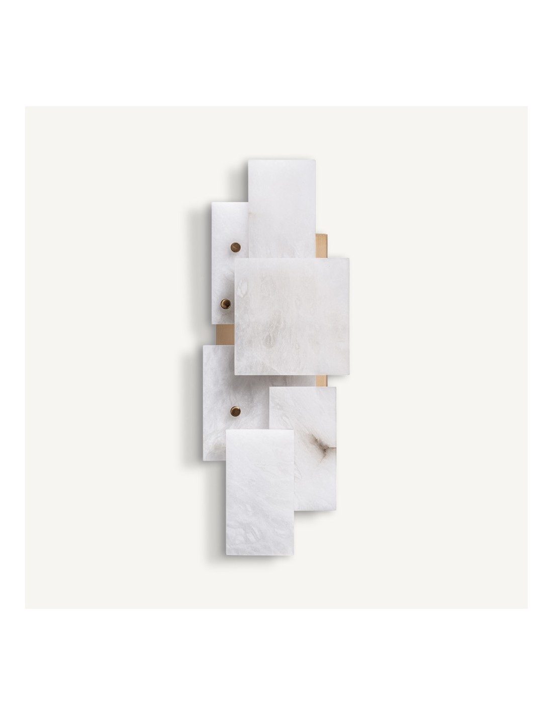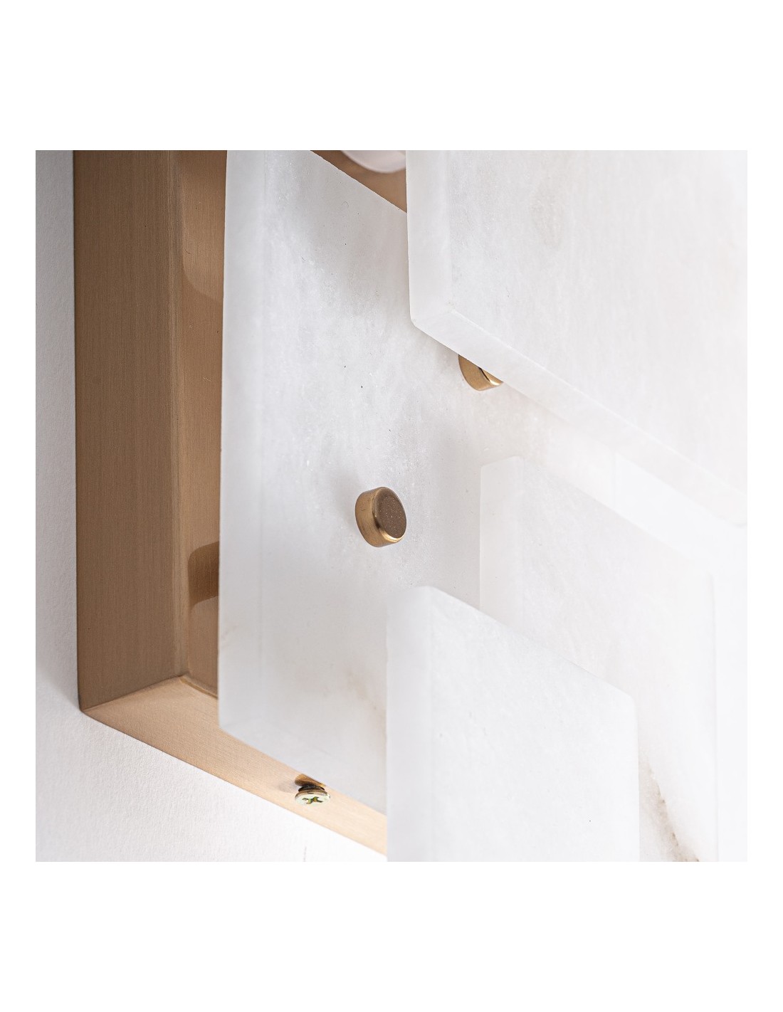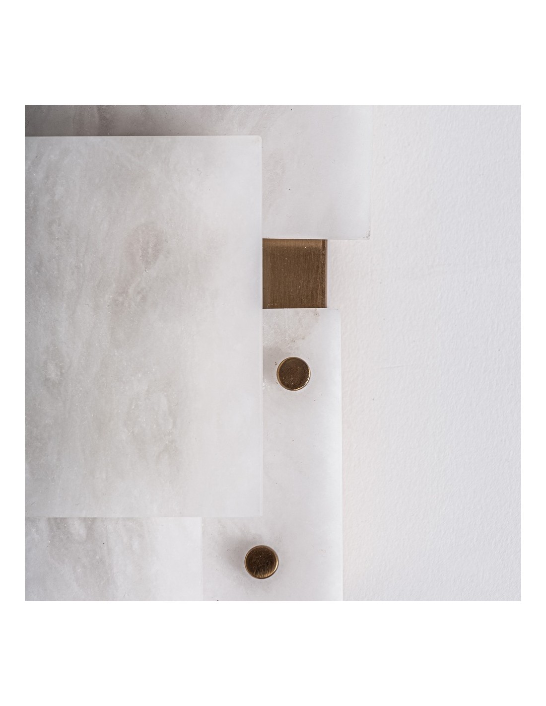 El Aplique Chanya destaca por su acabado en alabastro blanco, que difunde la luz suavemente, combinado con hierro dorado para un toque de lujo. Su diseño desmontable permite adaptarlo a diferentes espacios y estilos decorativos, convirtiéndolo en un detalle elegante y funcional.