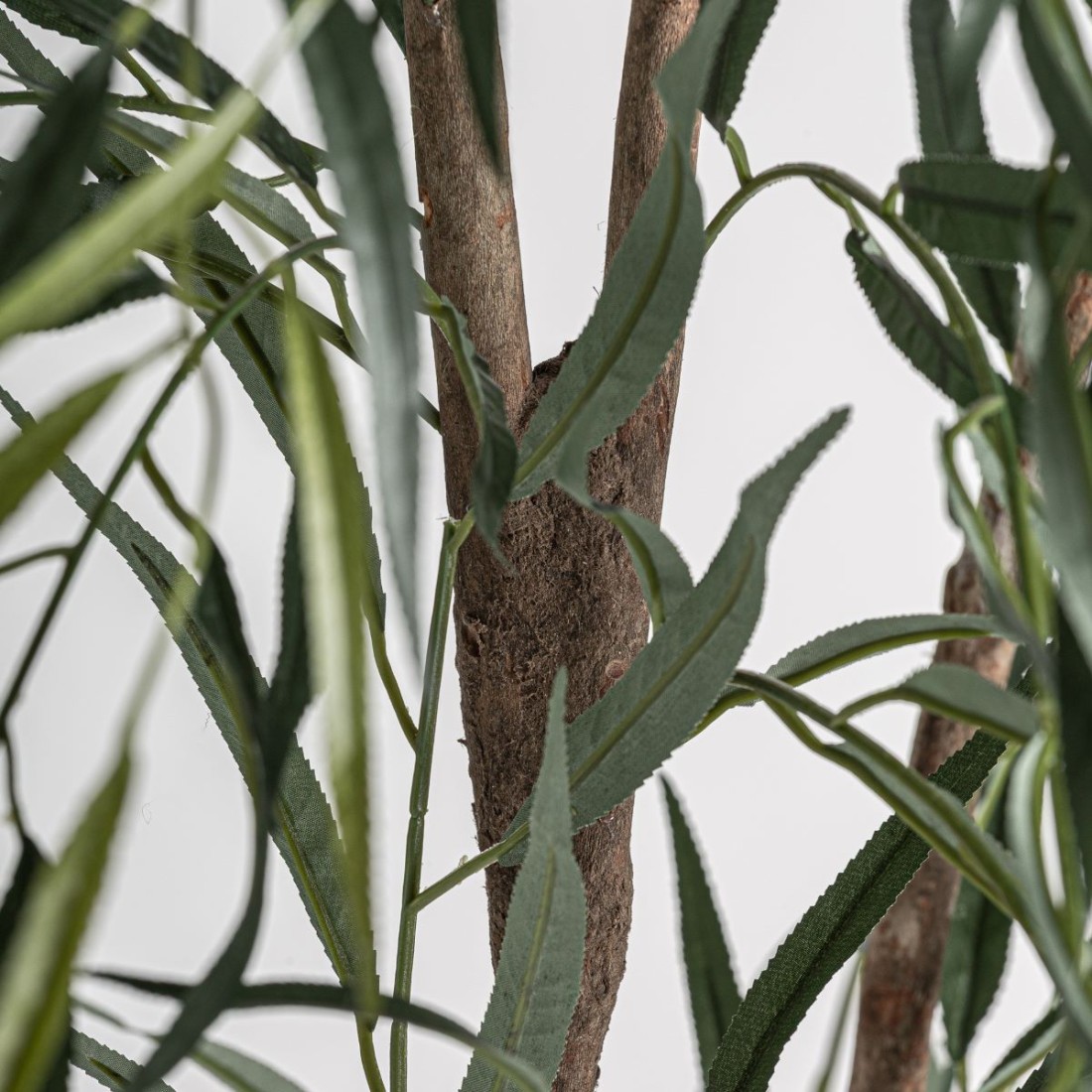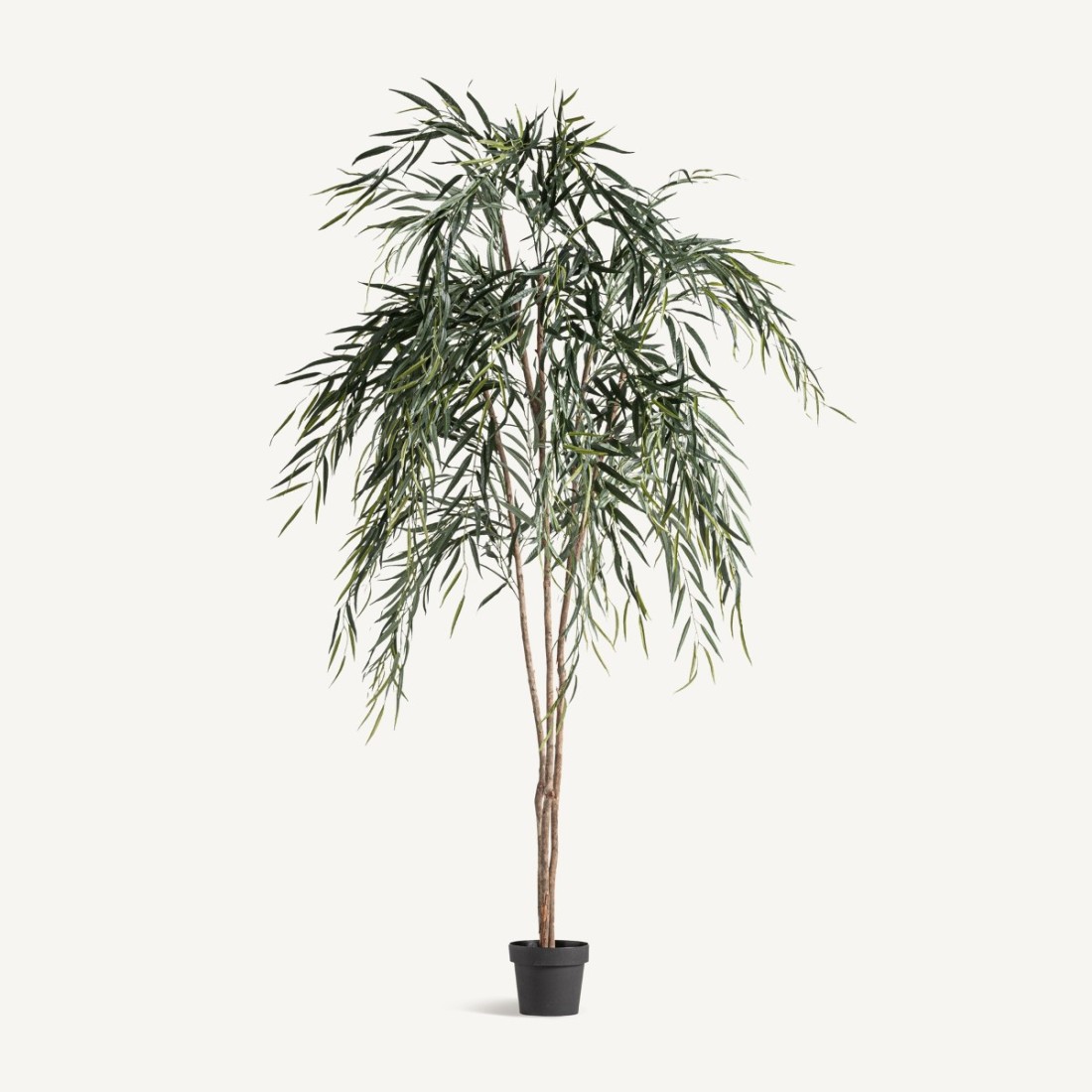 El Sauce clásico Vical Home combina poliéster, polietileno y madera para ofrecer una planta artificial de gran realismo y presencia. Sus hojas en poliéster verde imitan el movimiento natural de un Sauce real, mientras que el tronco en polietileno negro y la base de madera marrón aportan estabilidad, durabilidad y elegancia.