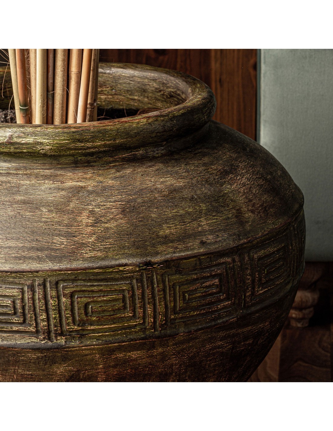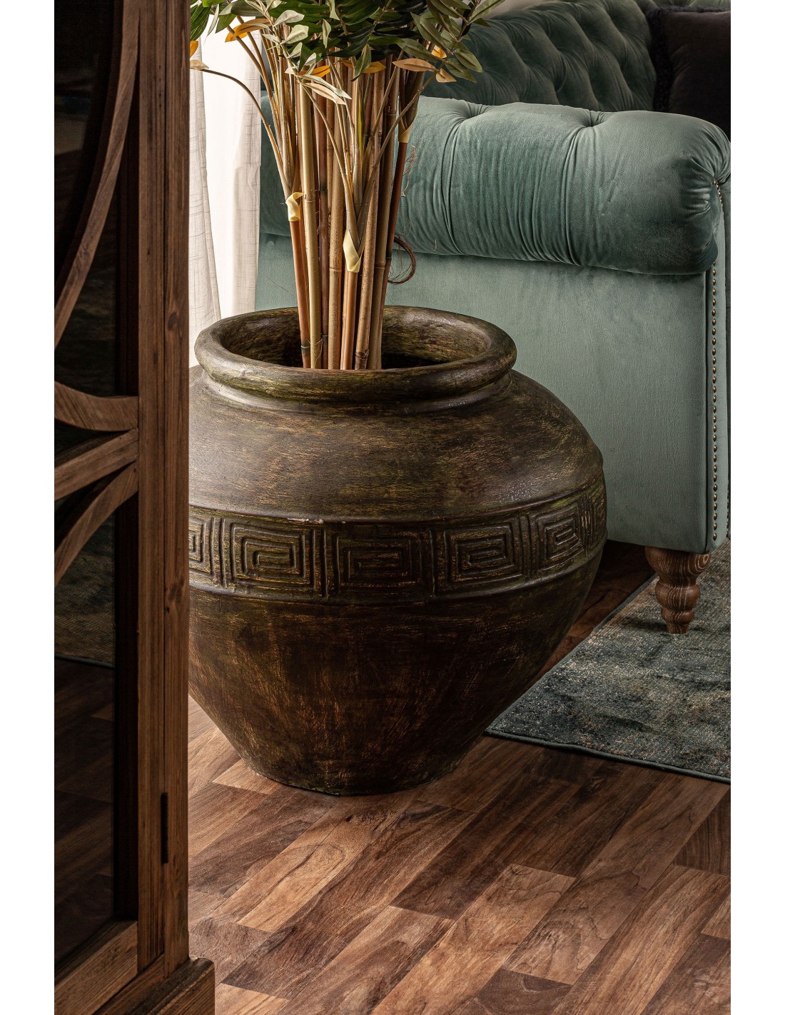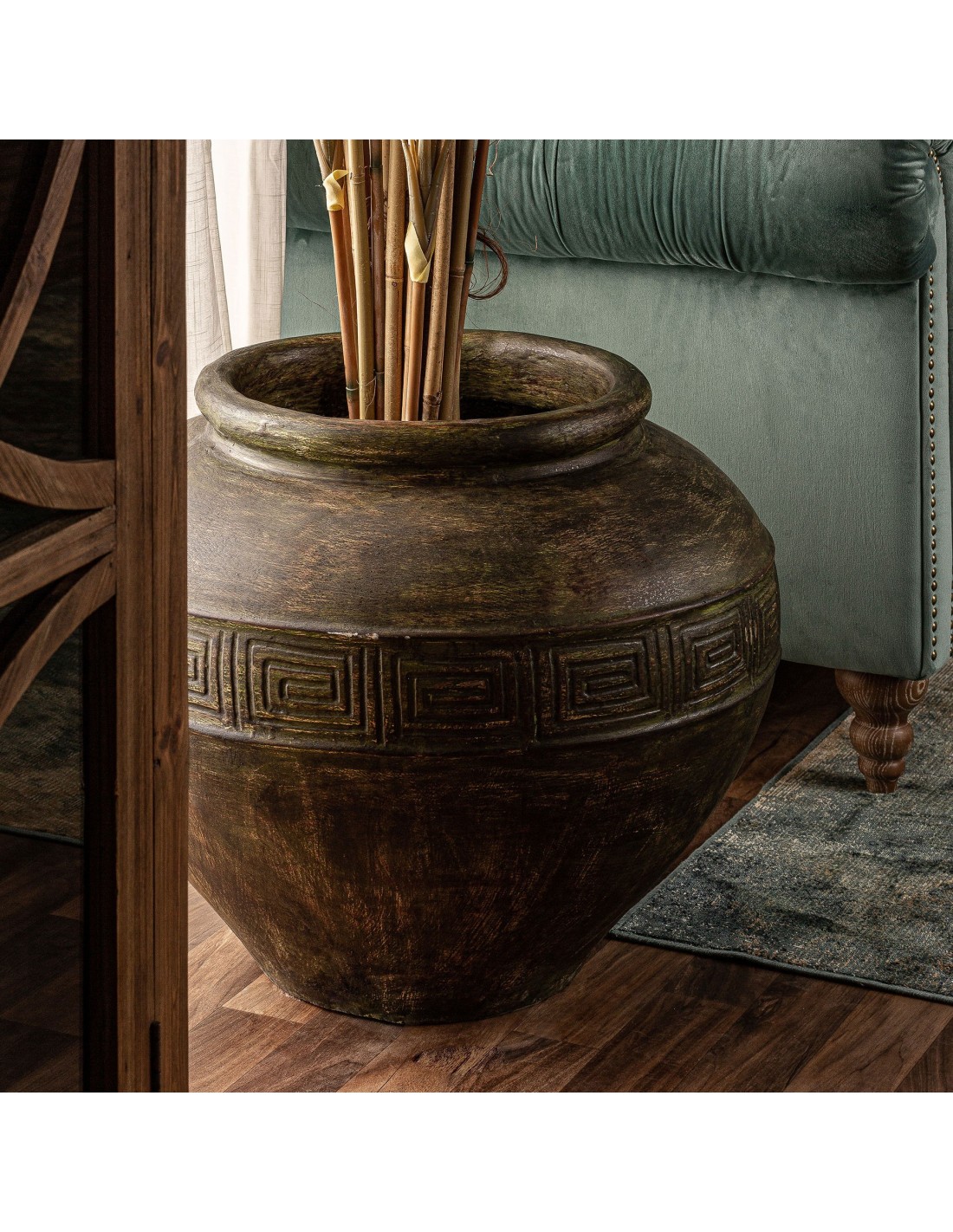 TINAJA REDONDA DINKA, EN COLOR DORADO, DE ESTILO VINTAGE. FABRICADO EN TERRACOTA.
