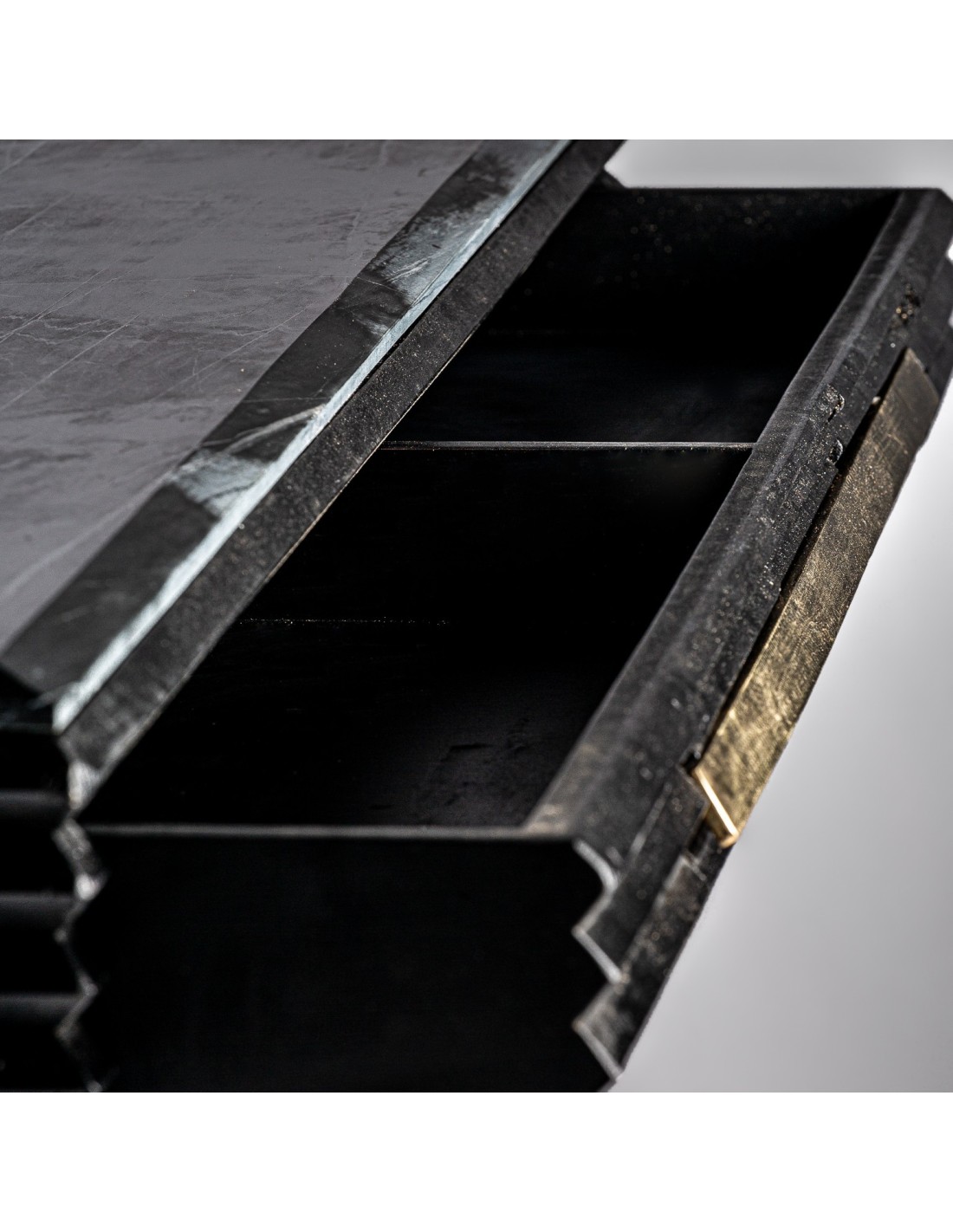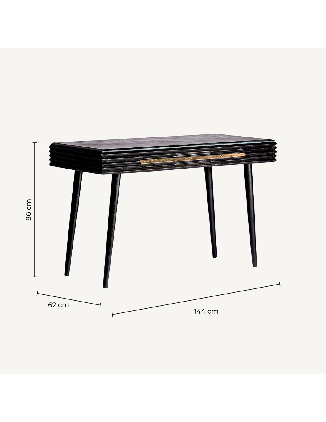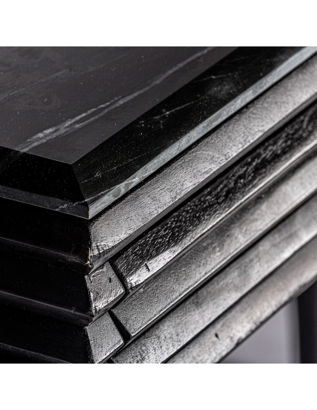 Material, color y acabados: Madera de mango en color negro, mármol mate en color oro y hierro.