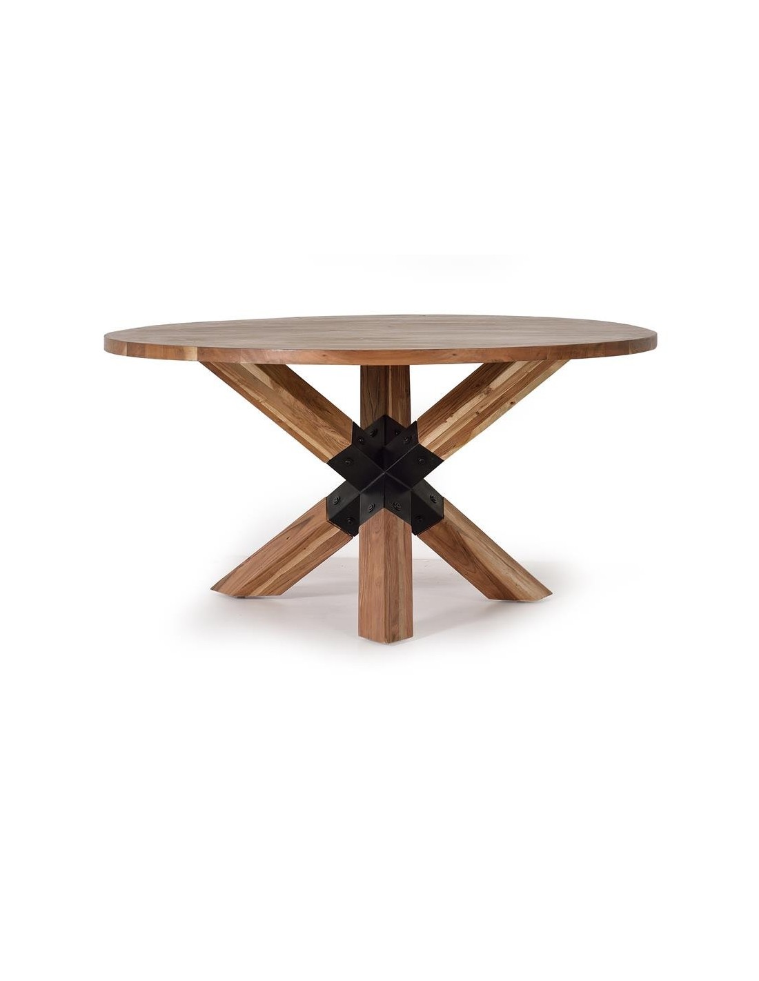 Mesa de Comedor Redonda en Acacia Maciza y Metal Negro – Giner y Colomer Ref. 1150 / 1151 VARIAS MEDIDAS