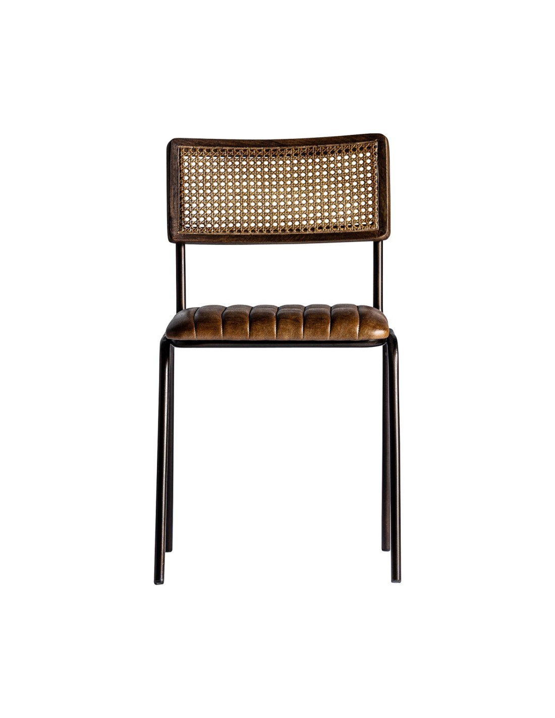 La silla Almstock de VICAL Home representa la fusión perfecta entre diseño industrial, confort clásico y materiales nobles. Su estructura en hierro forjado negro garantiza una resistencia superior, mientras que su asiento de cuero natural en tono marrón envejecido aporta calidez y carácter a cualquier espacio.