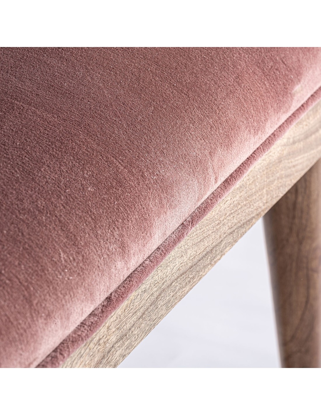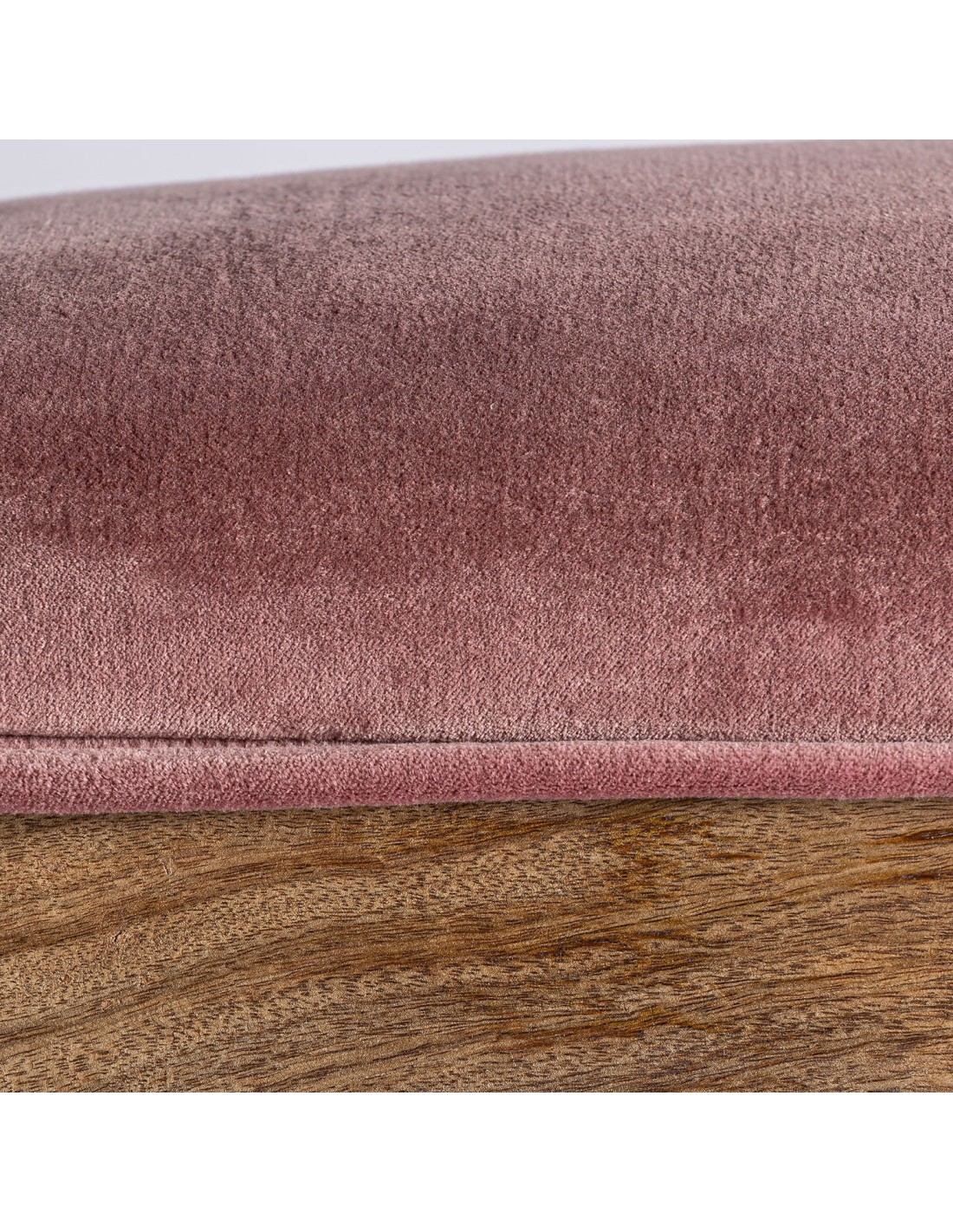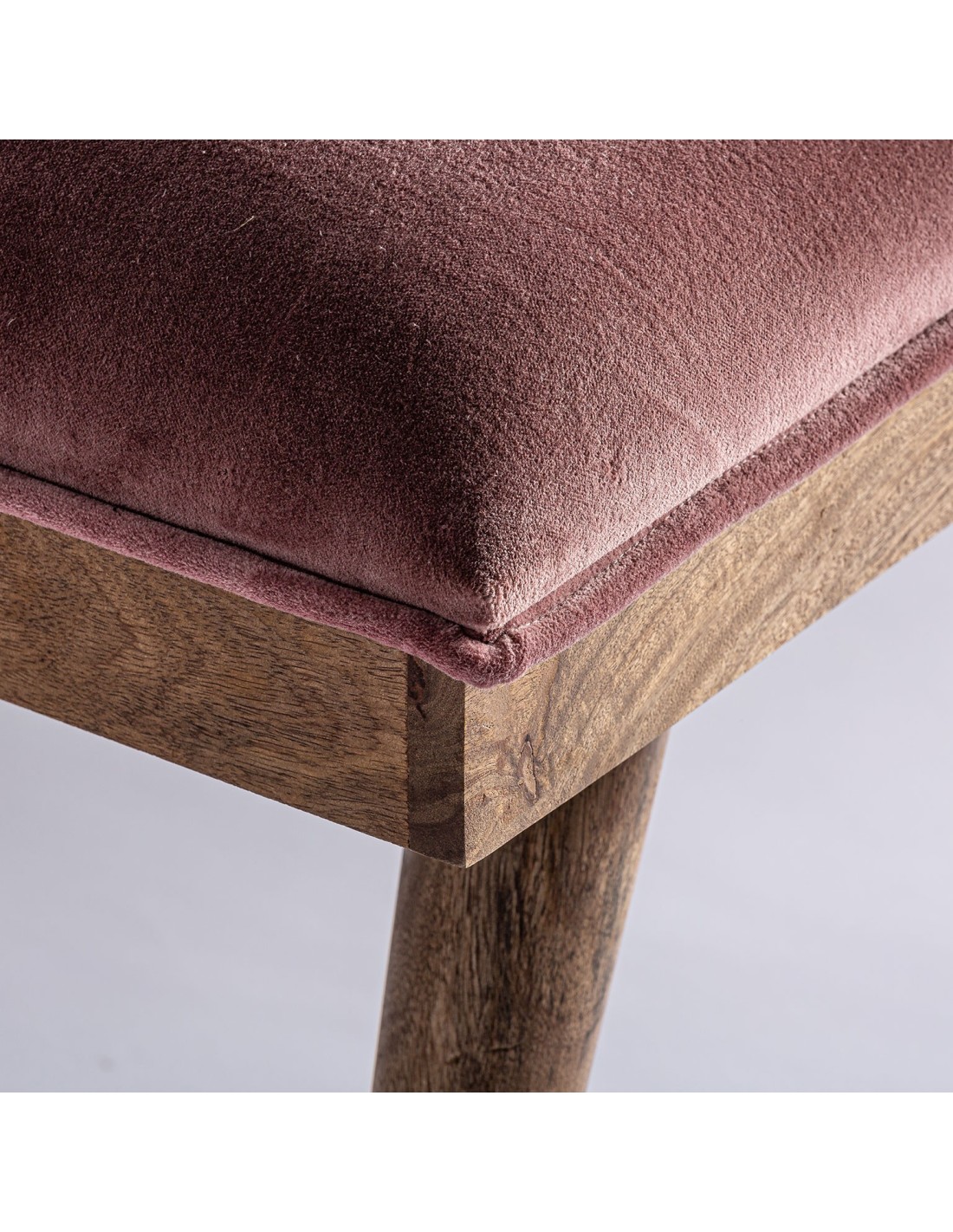 PIE DE CAMA TARDIANO, EN COLOR ROSA, DE ESTILO SHABBY CHIC. FABRICADO EN MADERA DE MANGO, COMBINADO CON TERCIOPELO Y ESPUMA. PRODUCTO DESMONTABLE.