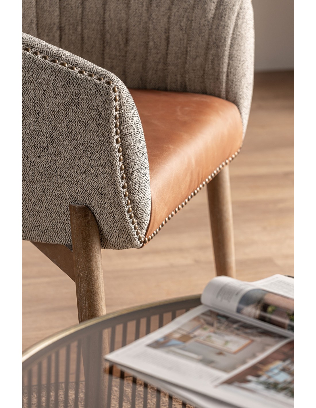 SILLA BERNEY, EN COLOR BLANCO/GRIS, DE ESTILO CLÁSICO. FABRICADO EN MADERA DE ABETO, COMBINADO CON POLIÉSTER Y ESPUMA.