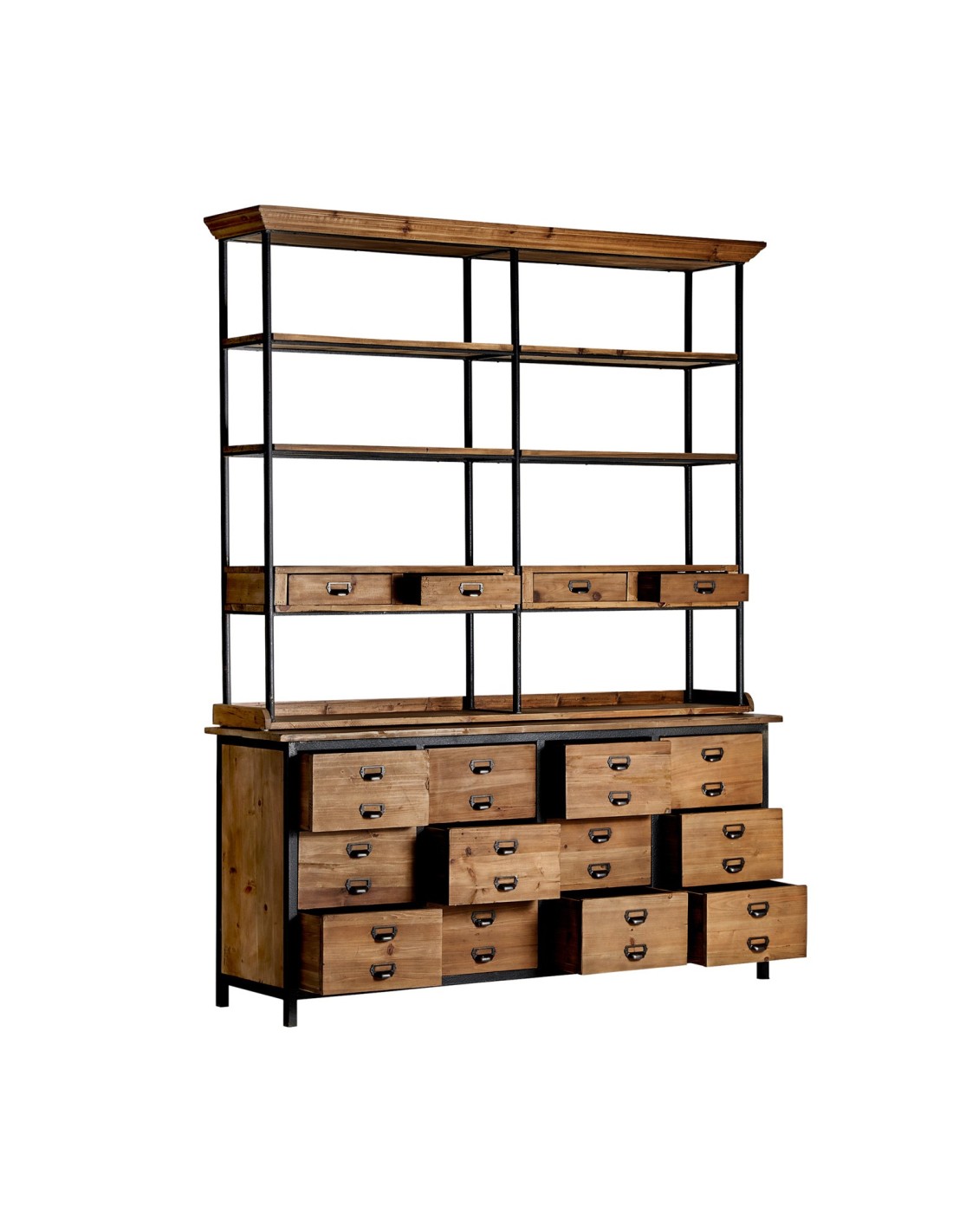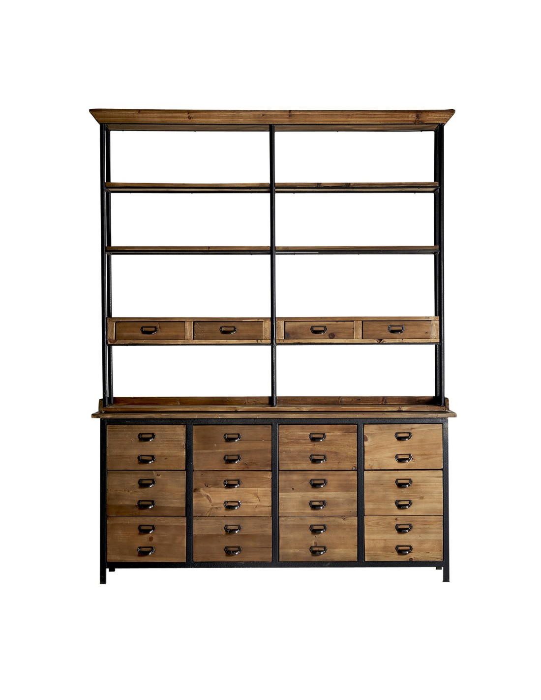 ESTANTERIA MINOT, DE ESTILO INDUSTRIAL. FABRICADO EN MADERA DE OLMO, EN COLOR MARRÓN ENVEJECIDO. PRODUCTO DESMONTABLE.