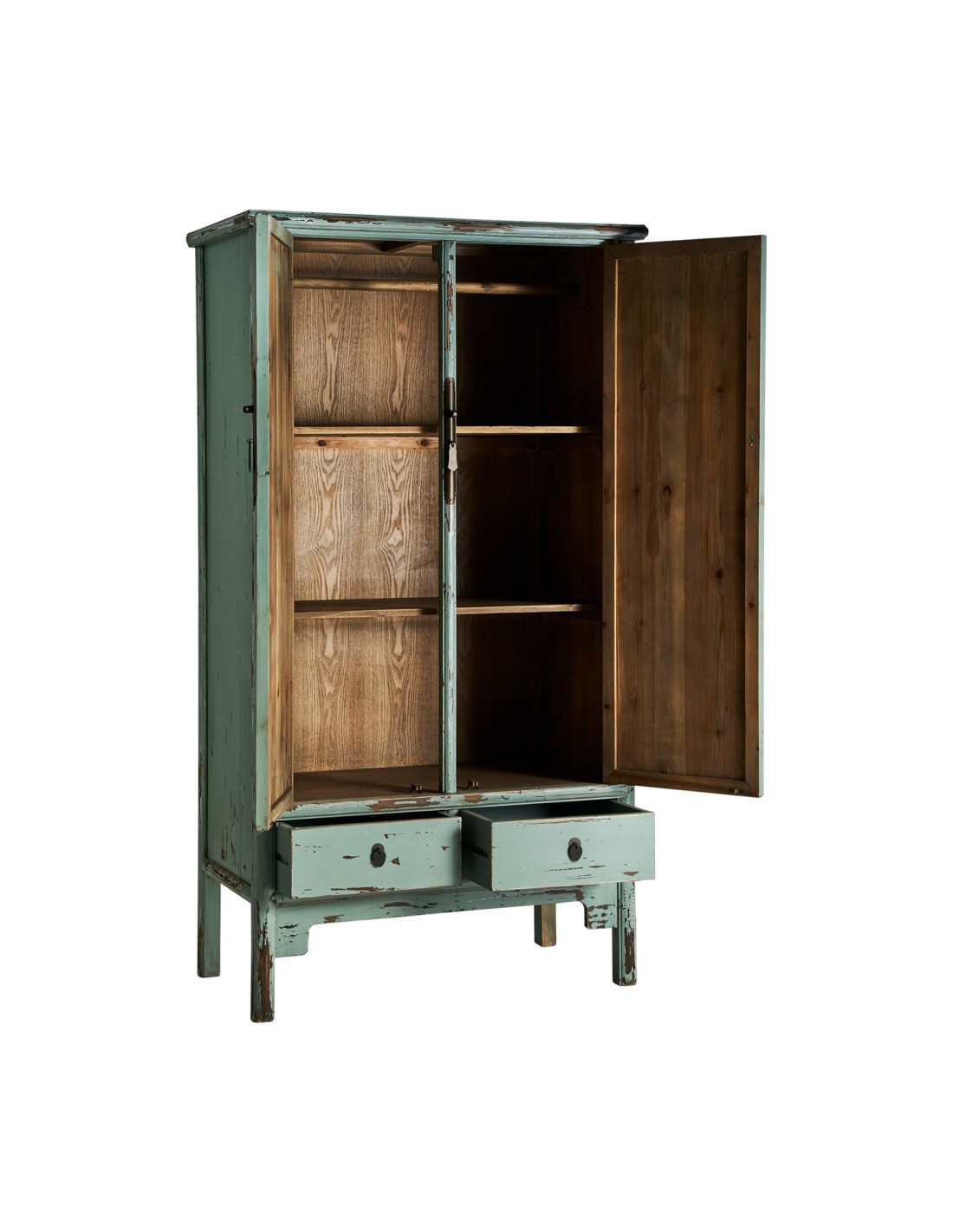 ARMARIO EASKY, EN COLOR VERDE ENVEJECIDO, DE ESTILO ORIENTAL. FABRICADO EN MADERA DE OLMO.