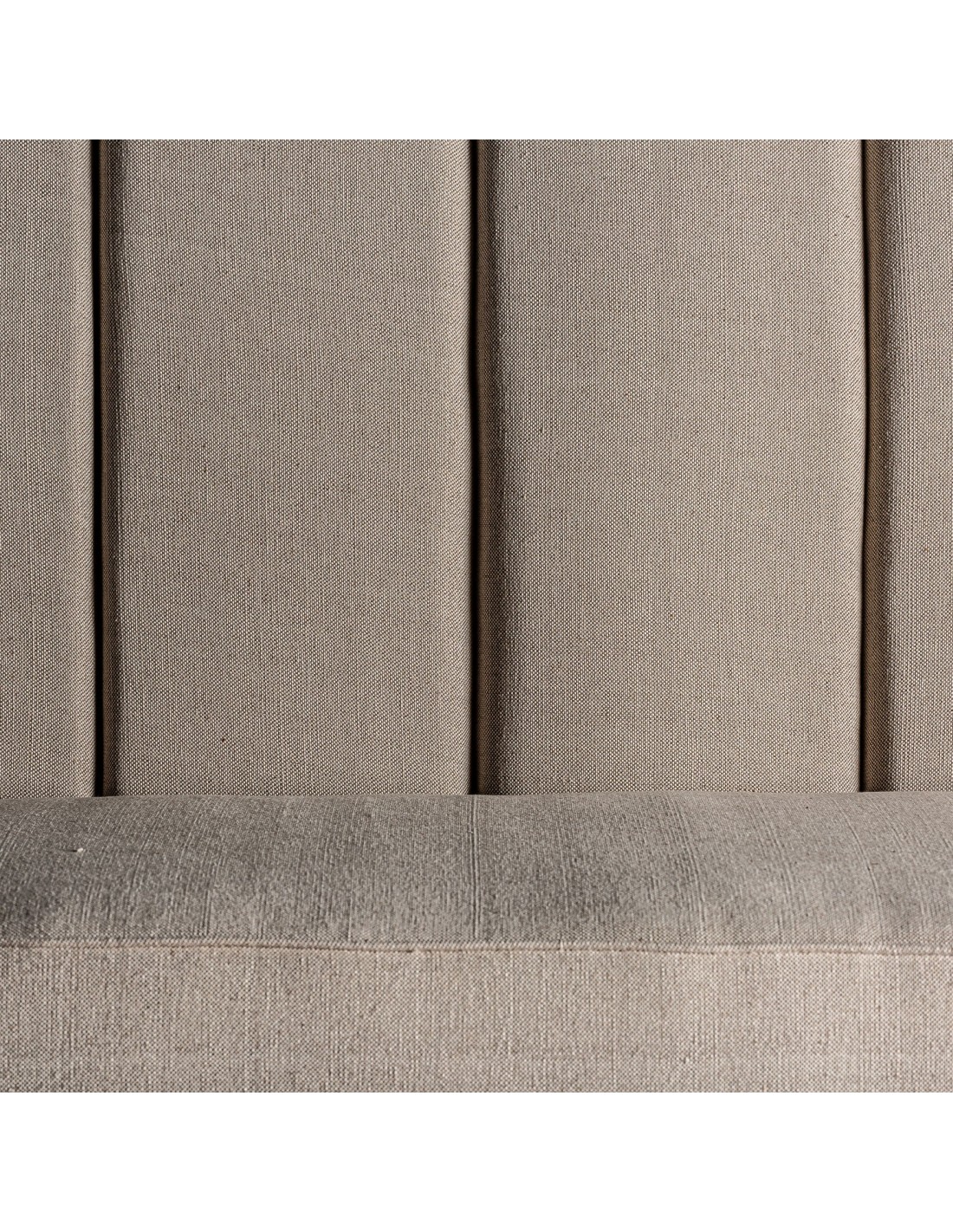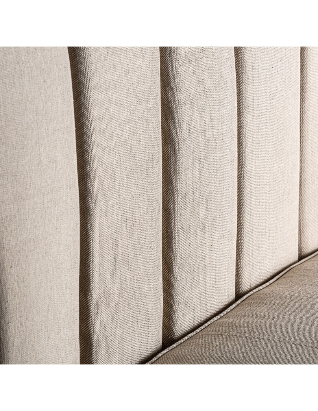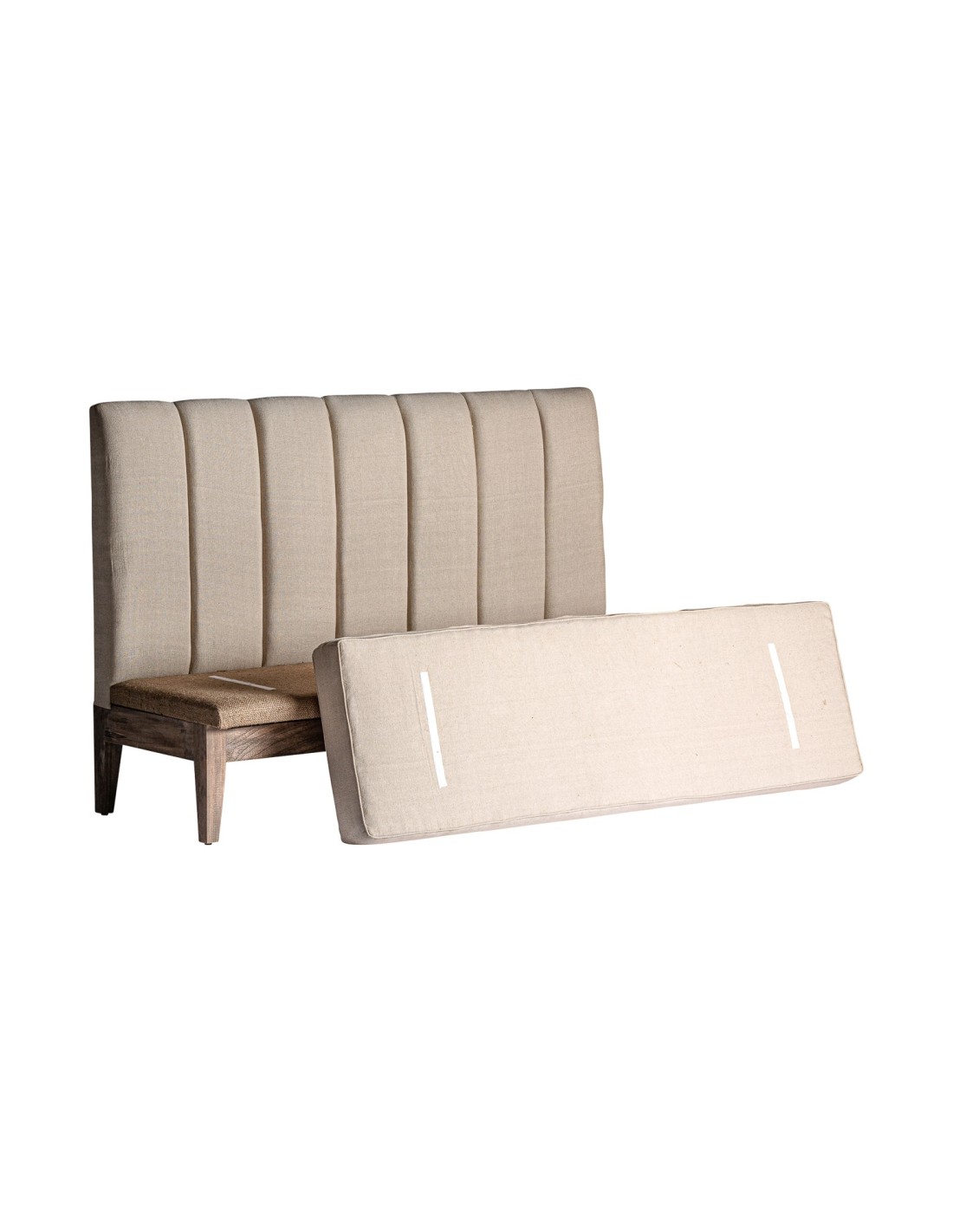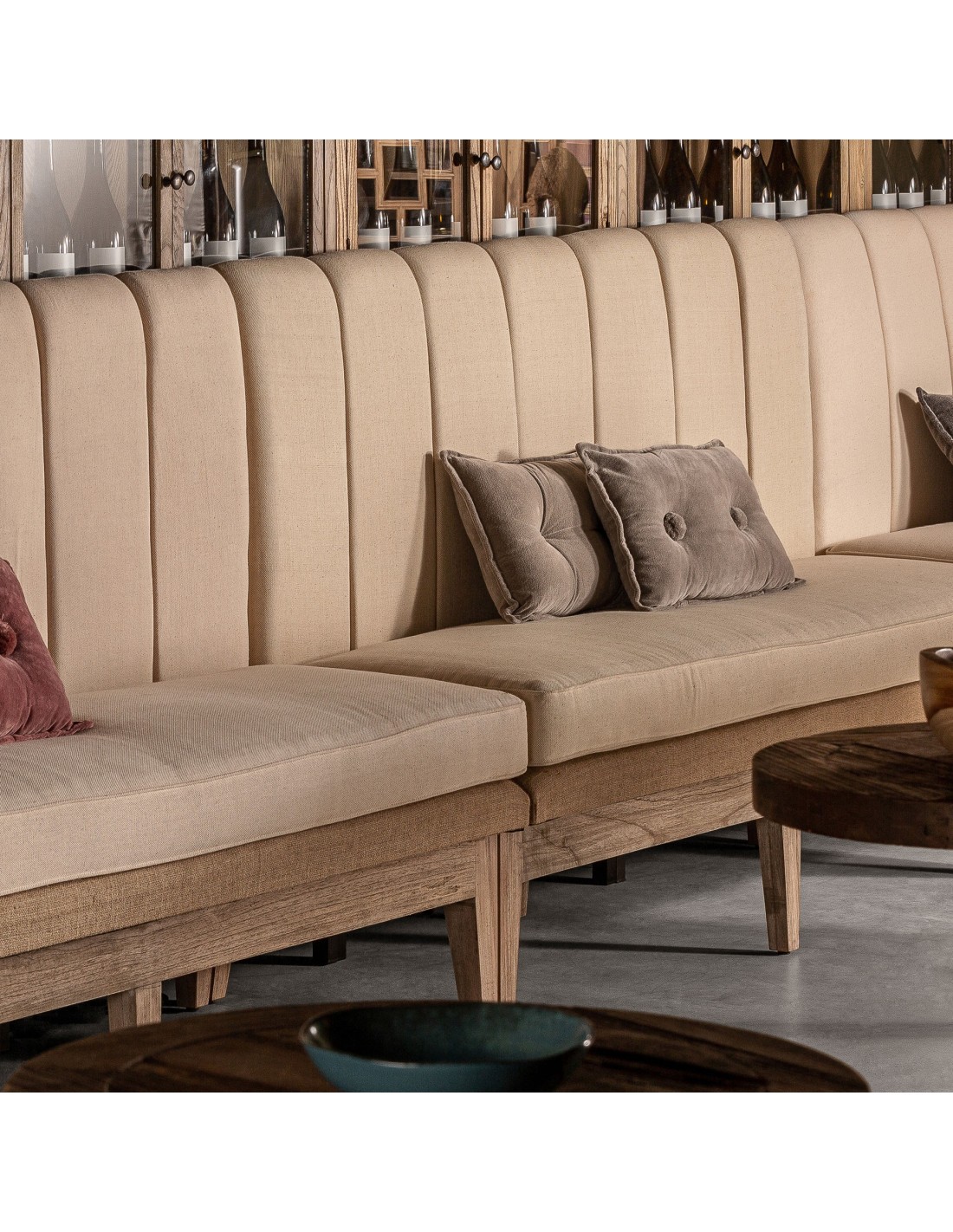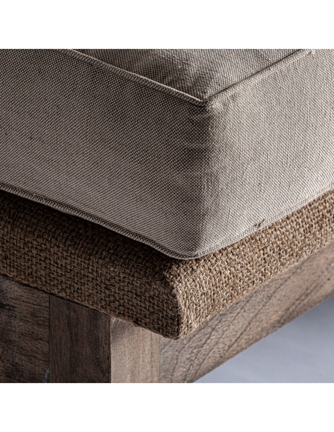 SOFÁ BAR RETZ, DE ESTILO PROVENZAL. FABRICADO EN MADERA DE TEKA, EN COLOR BLANCO ROTO, COMBINADO CON LINO.
