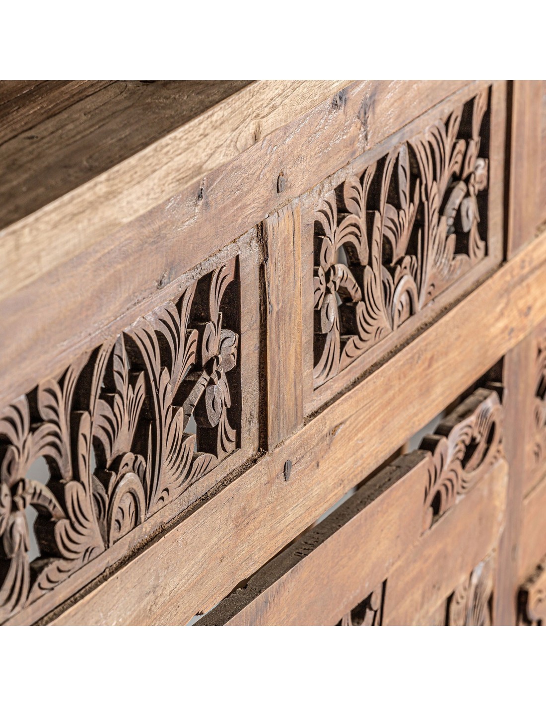 CONSOLA KIDAU, EN COLOR MARRÓN ENVEJECIDO, DE ESTILO ÉTNICO. FABRICADO EN MADERA DE TEKA.