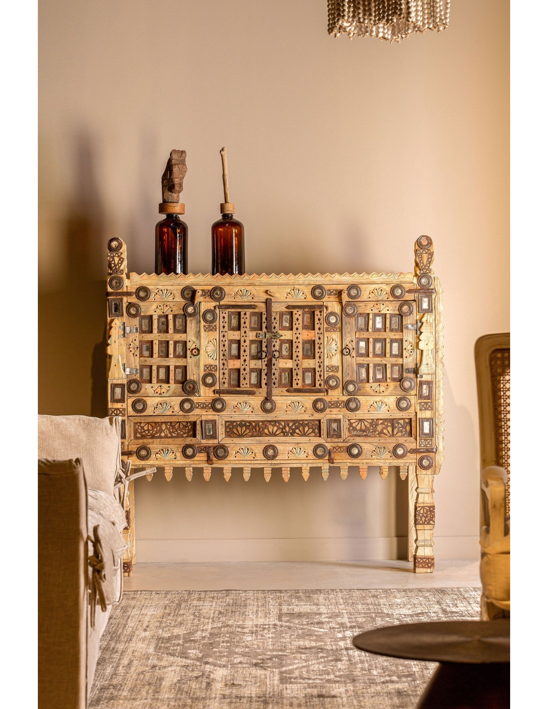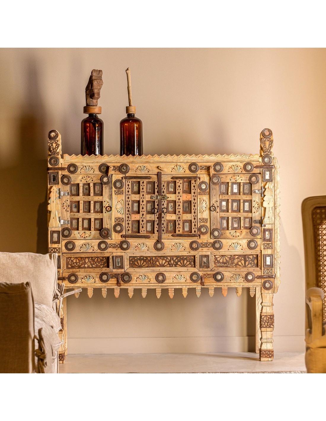 CONSOLA BEPEA, EN COLOR MARRÓN ENVEJECIDO, DE ESTILO ÉTNICO. FABRICADO EN MADERA DE TEKA.
