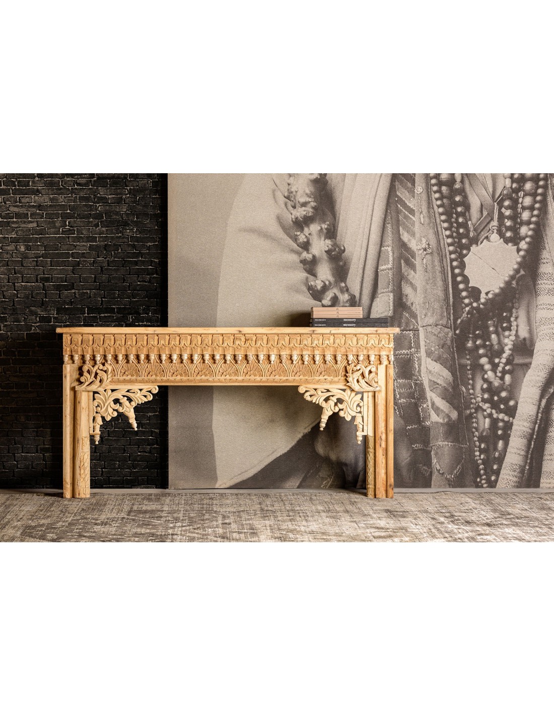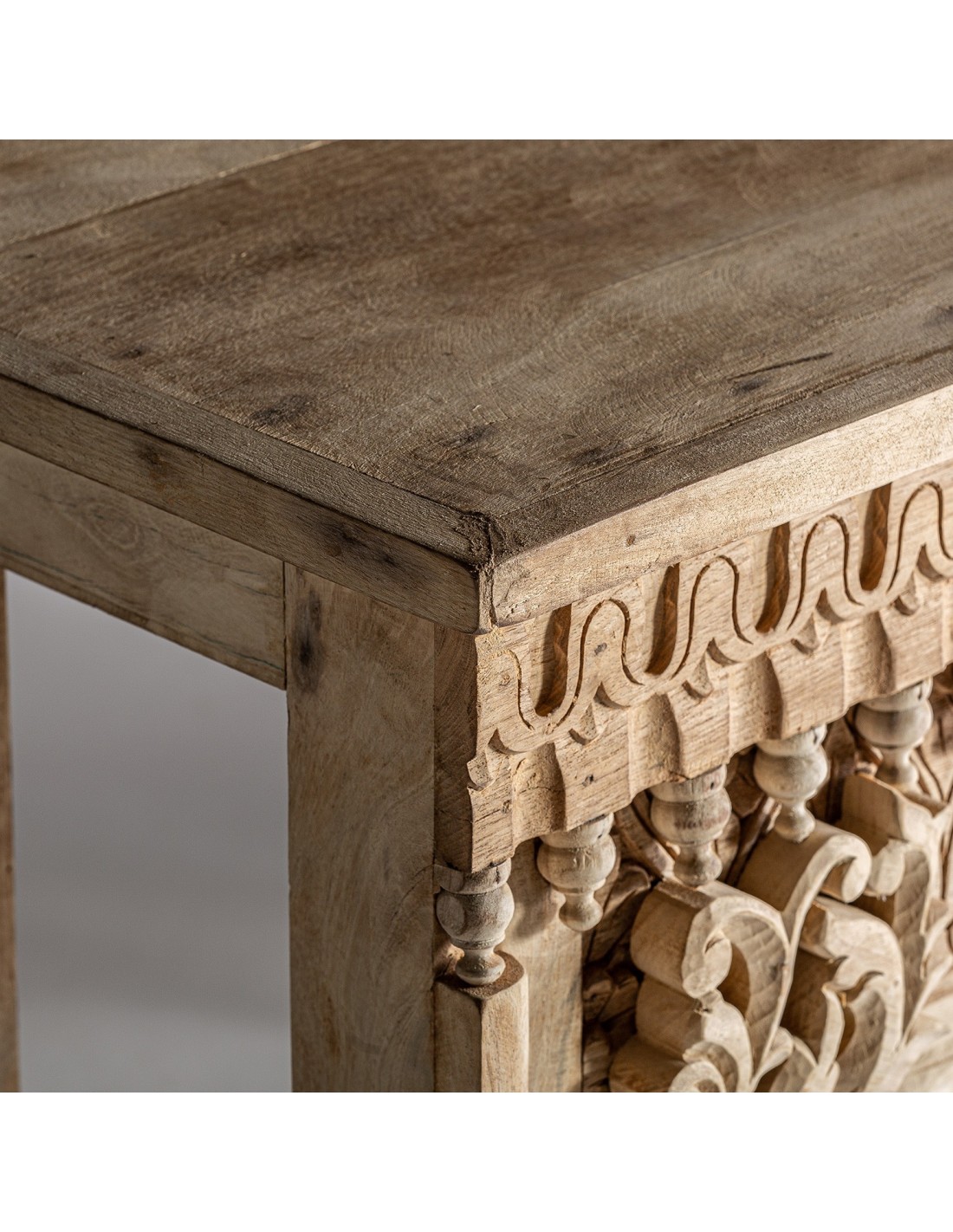 CONSOLA BEKILY, DE ESTILO ÉTNICO. FABRICADO EN MADERA DE TEKA, EN COLOR MARRÓN ENVEJECIDO.