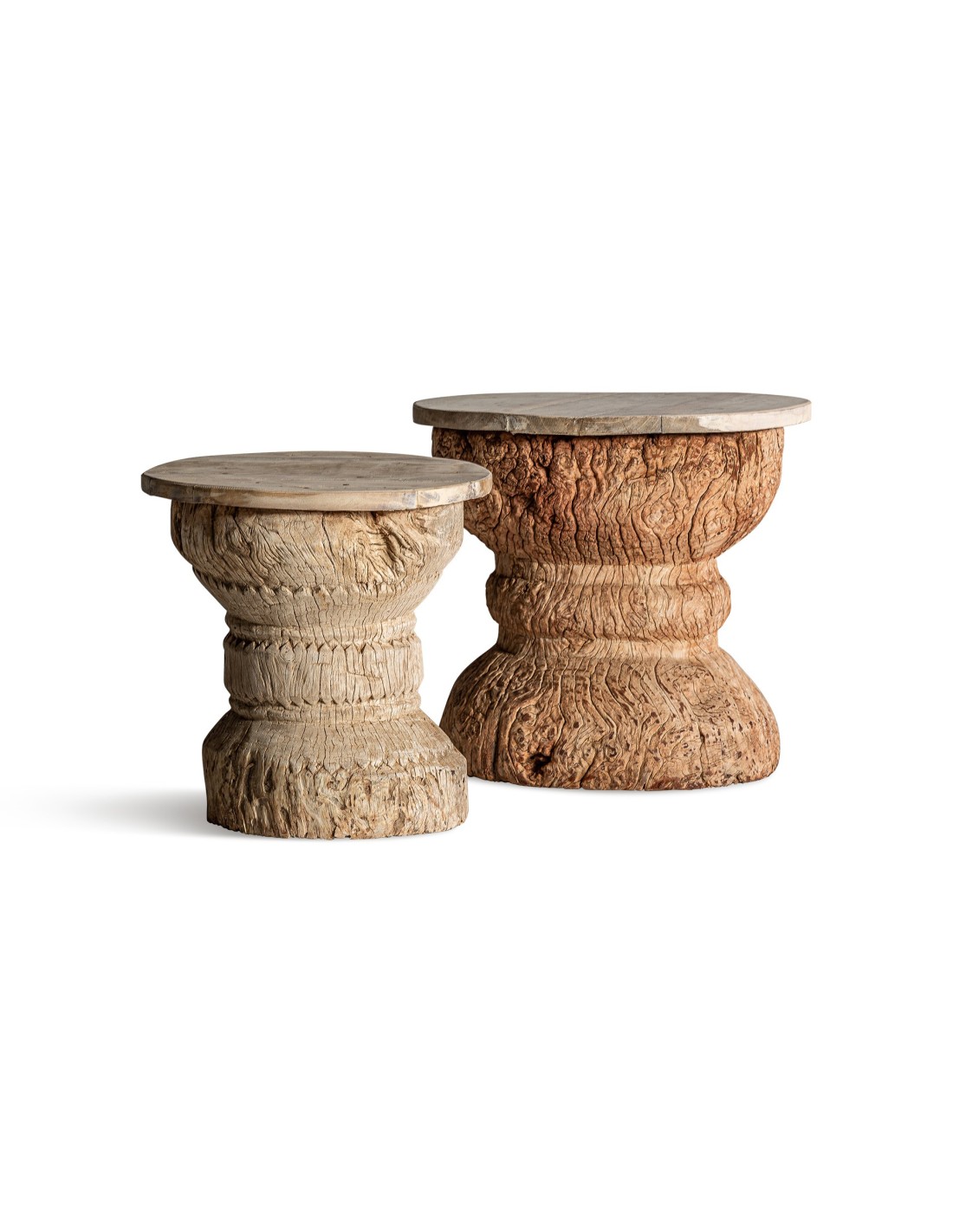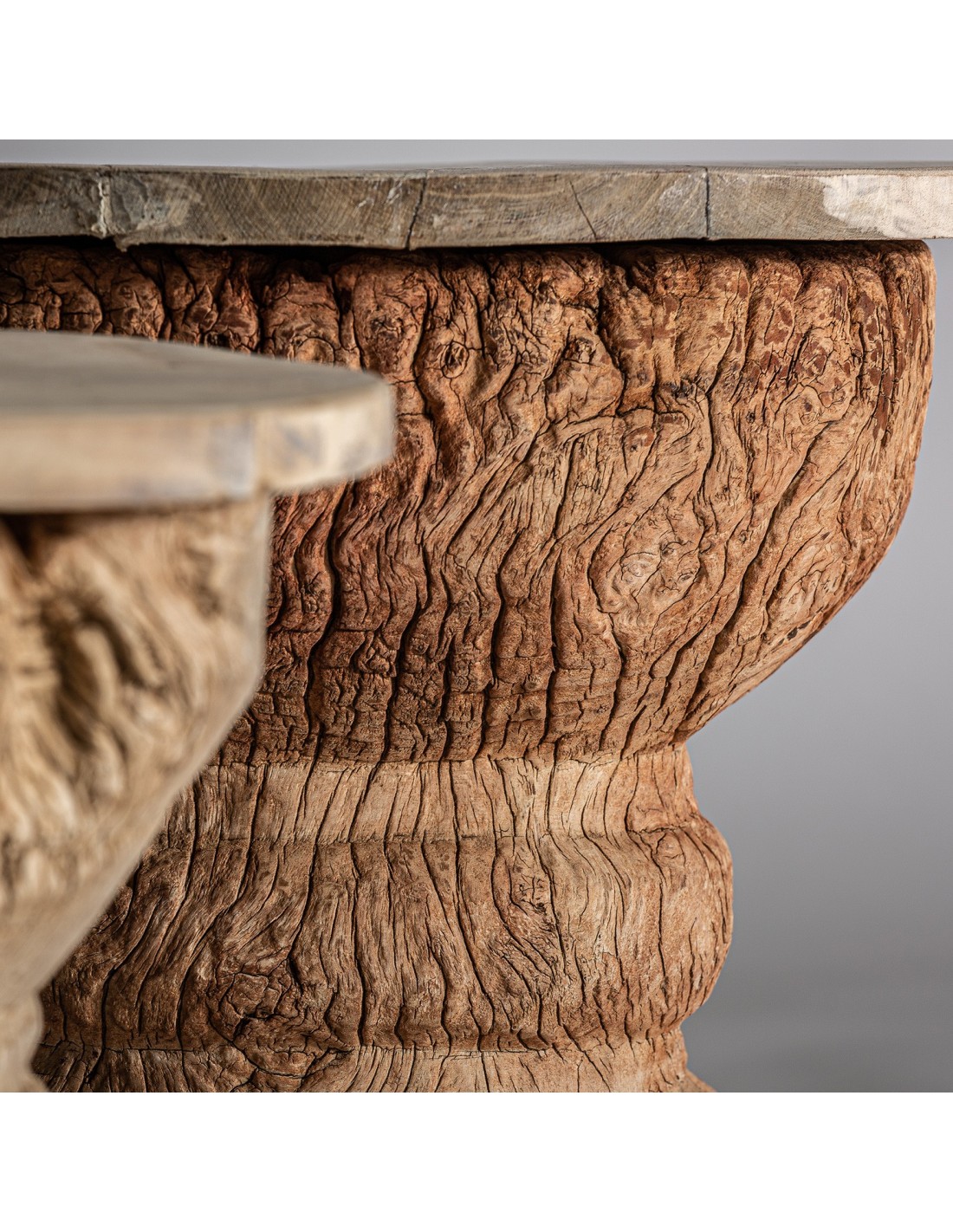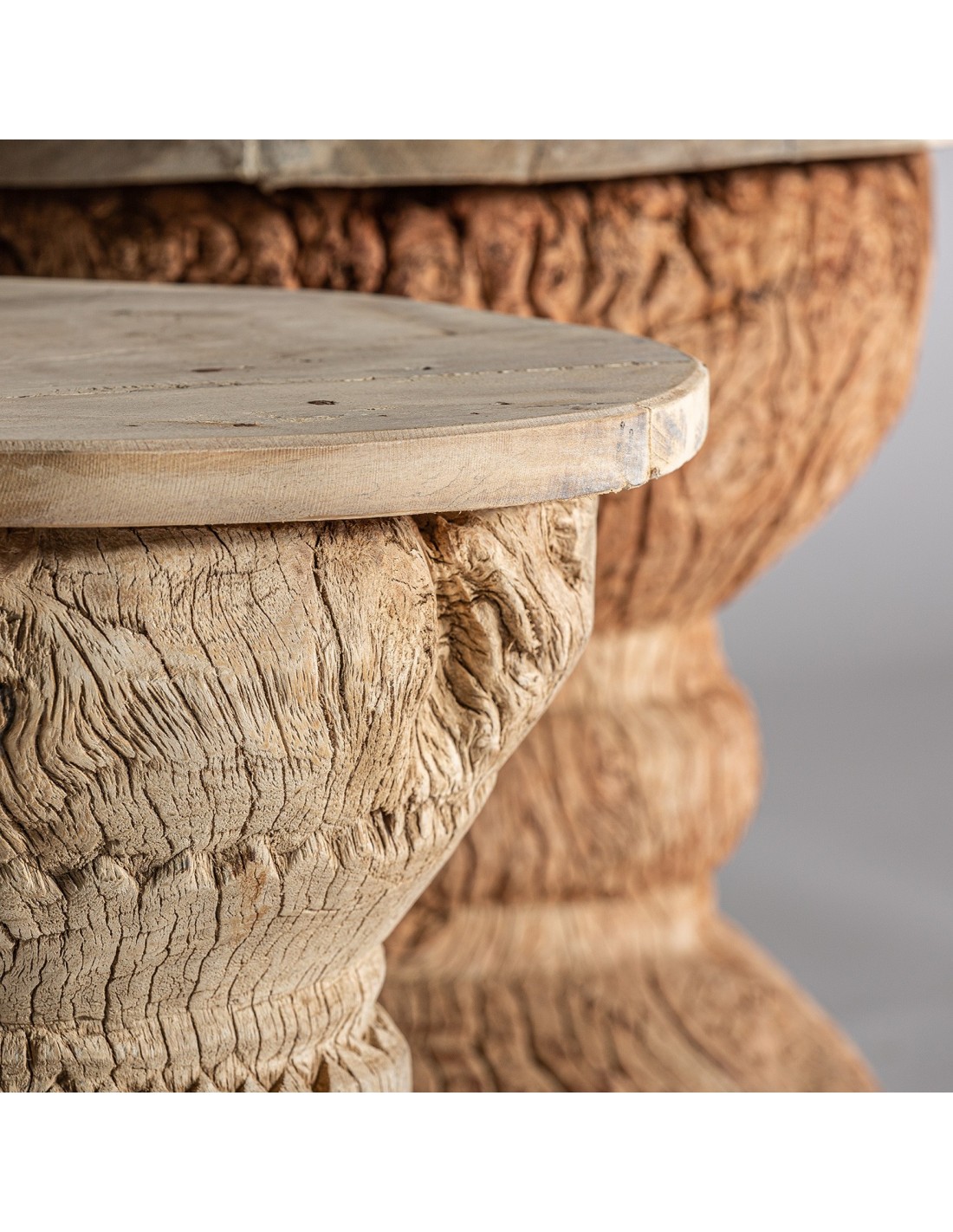 MESA AUXILIAR SURTIDO BESAKOA, DE ESTILO ÉTNICO. FABRICADO EN MADERA DE TEKA, EN COLOR MARRÓN ENVEJECIDO, COMBINADO CON MADERA DE MANGO.
