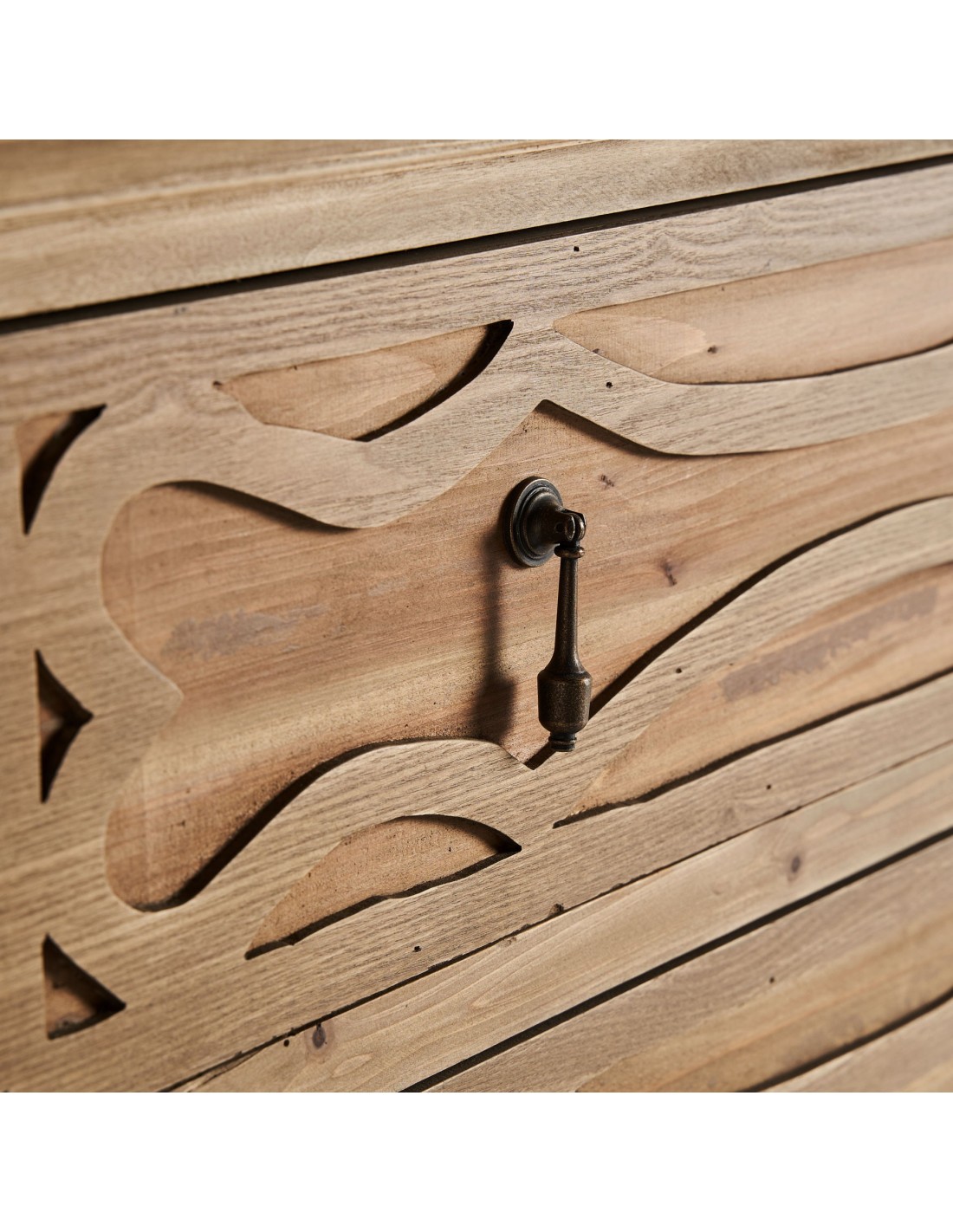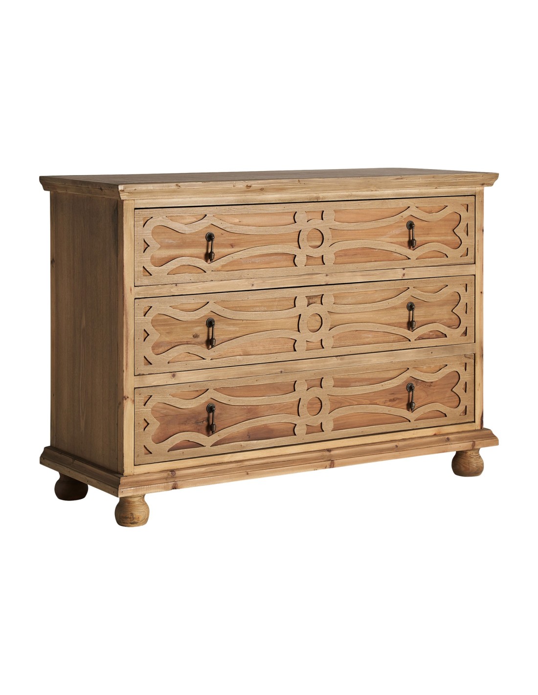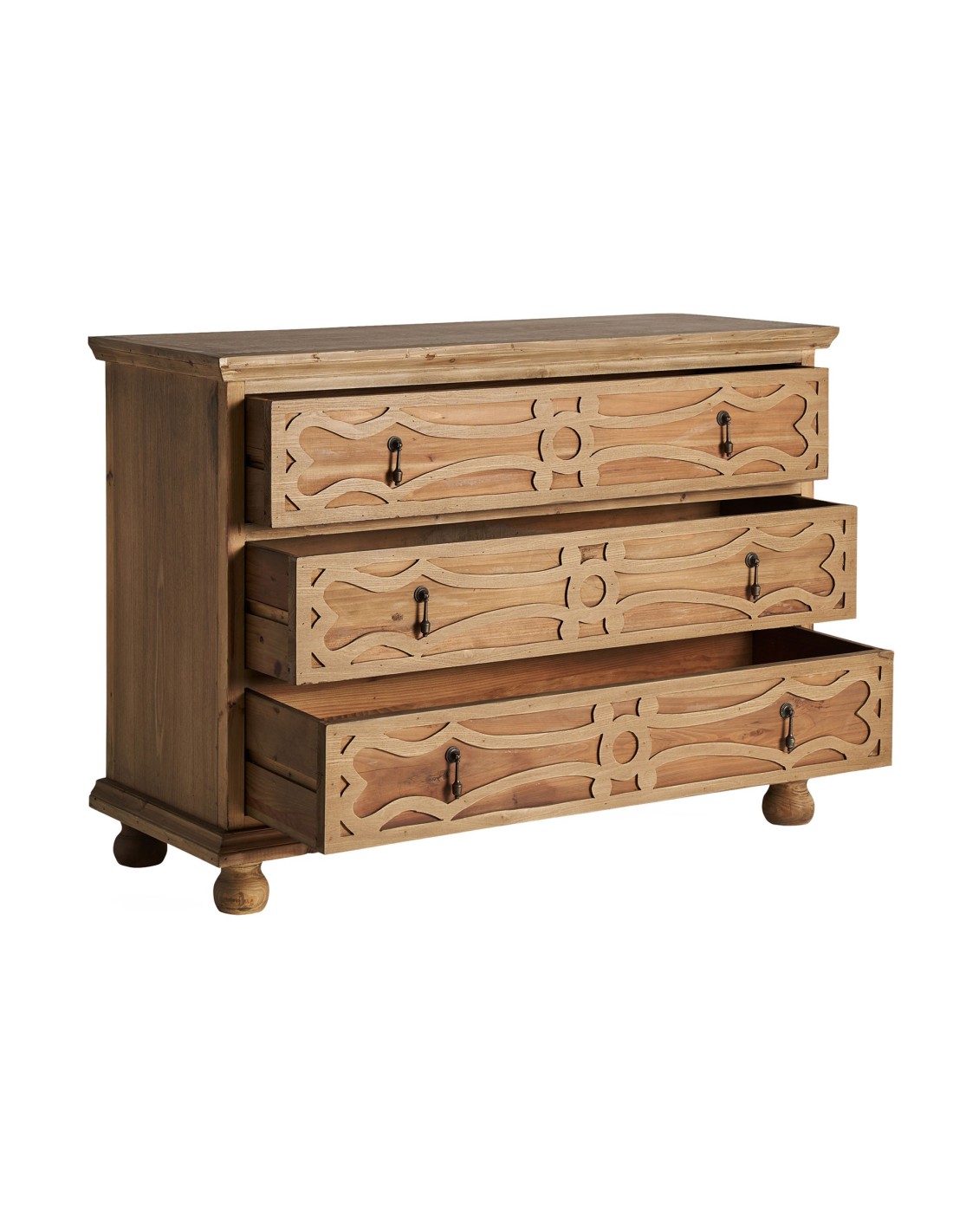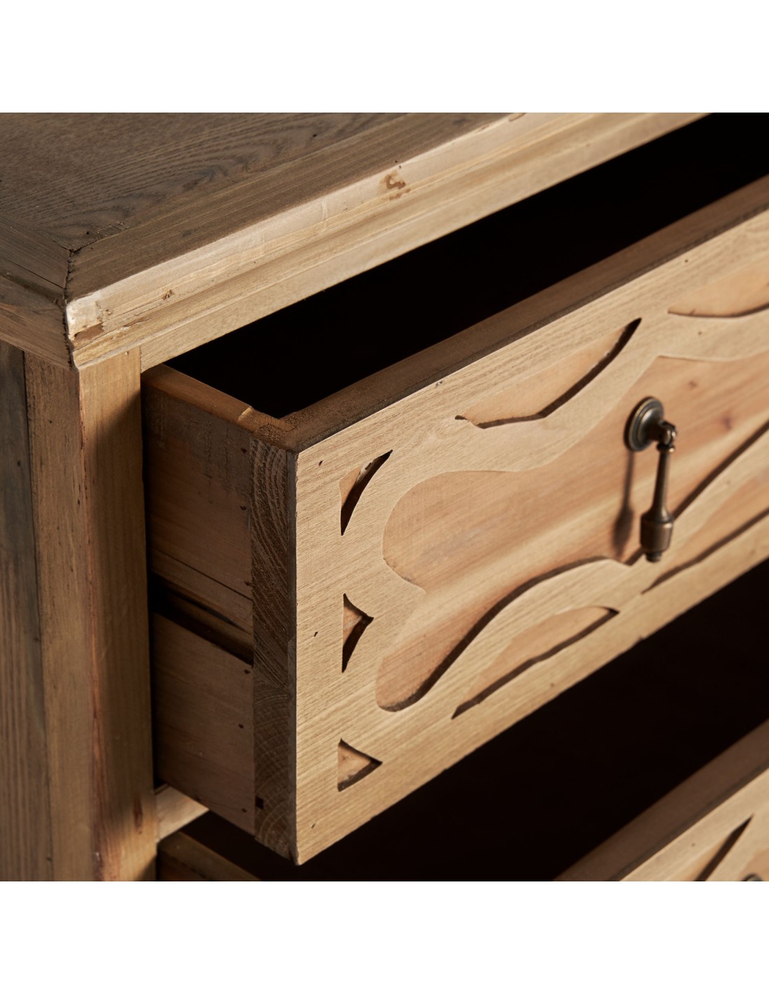 CÓMODA RUMFORD, EN COLOR NATURAL, DE ESTILO COLONIAL. FABRICADO EN MADERA DE OLMO.