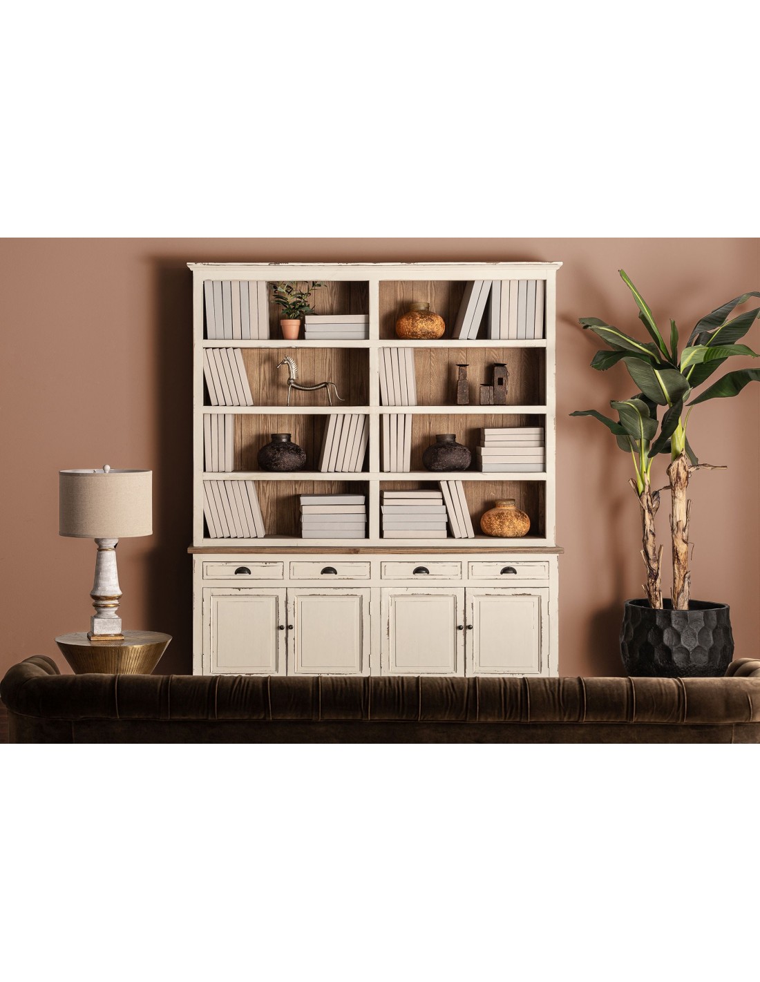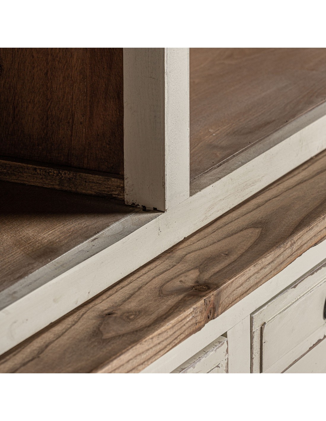 ESTANTERIA PIVKA, DE ESTILO PROVENZAL. FABRICADO EN MADERA DE OLMO, EN COLOR BLANCO ROTO. COMPATIBLE CON: 29462.