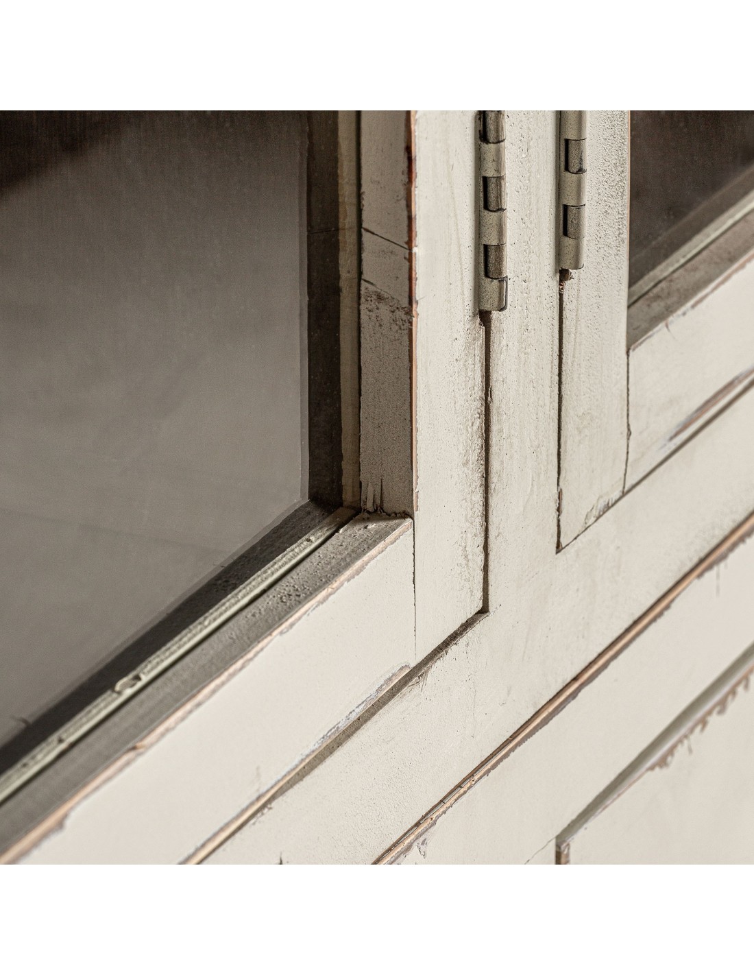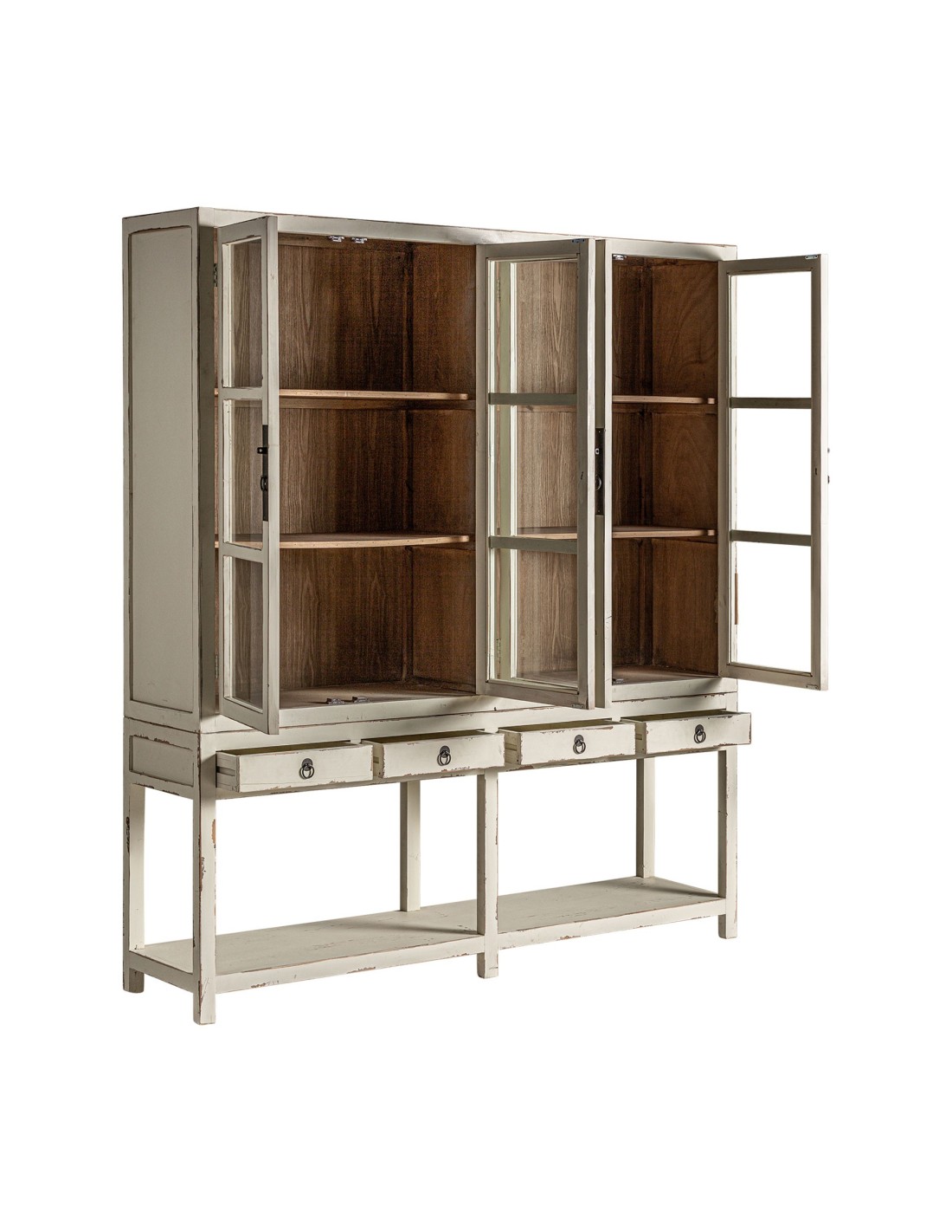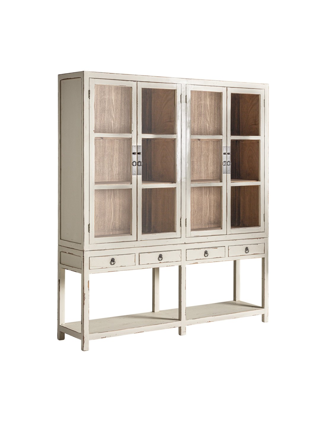 VITRINA PIVKA, DE ESTILO PROVENZAL. FABRICADO EN MADERA DE OLMO, EN COLOR BLANCO ROTO. PRODUCTO APILABLE, DESMONTABLE.