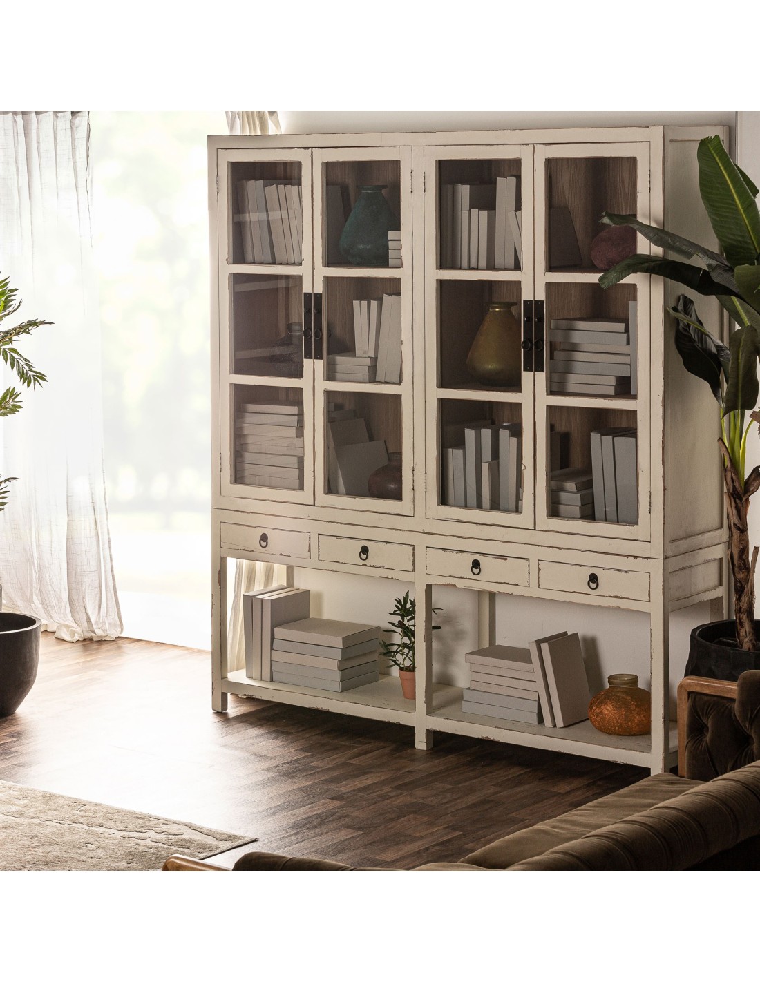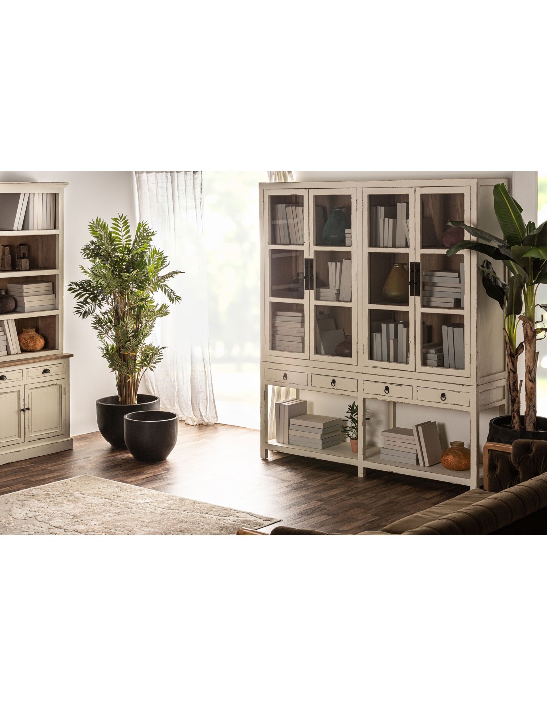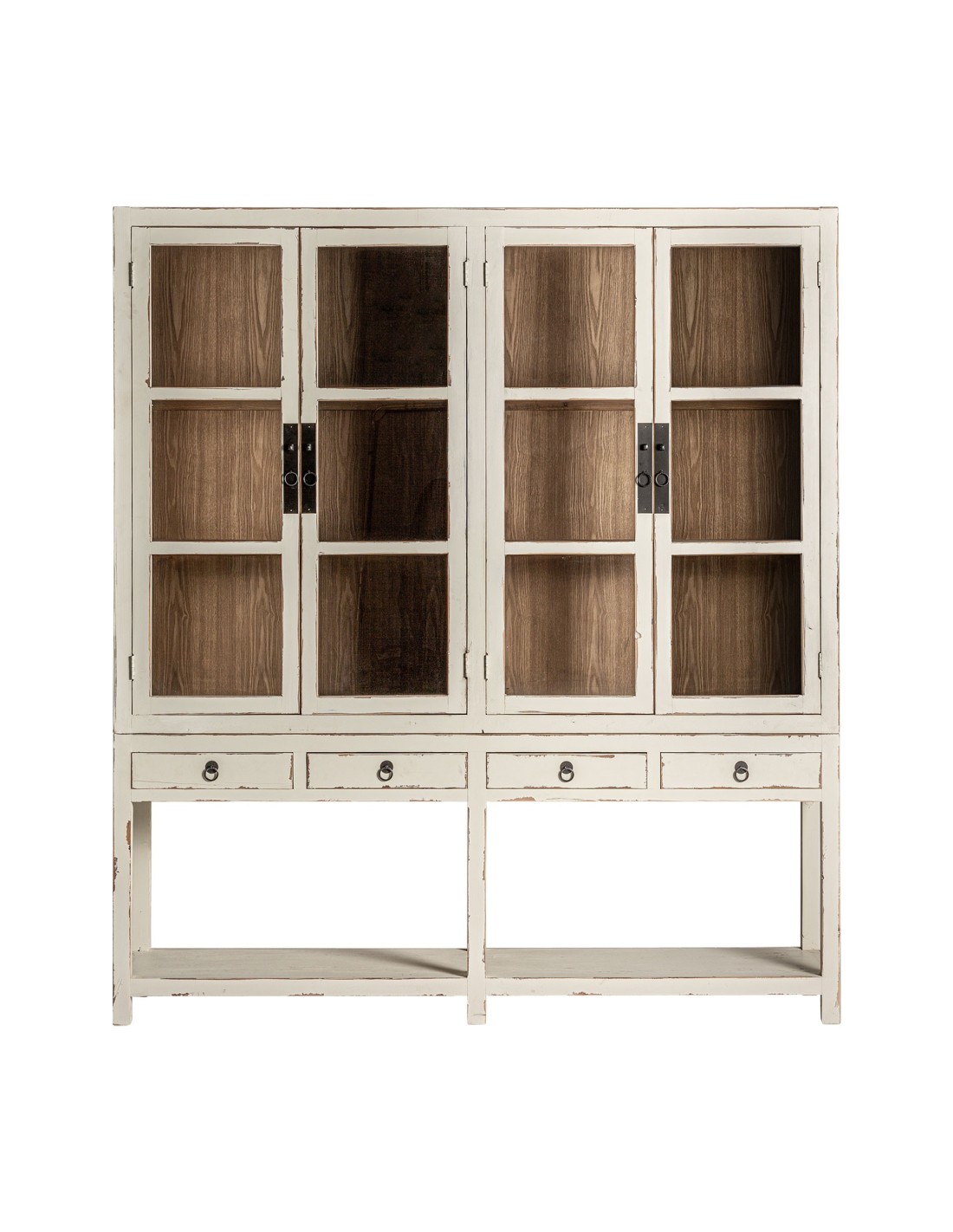 VITRINA PIVKA, DE ESTILO PROVENZAL. FABRICADO EN MADERA DE OLMO, EN COLOR BLANCO ROTO. PRODUCTO APILABLE, DESMONTABLE.