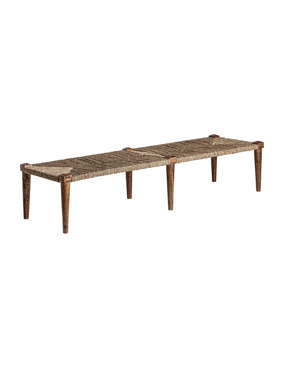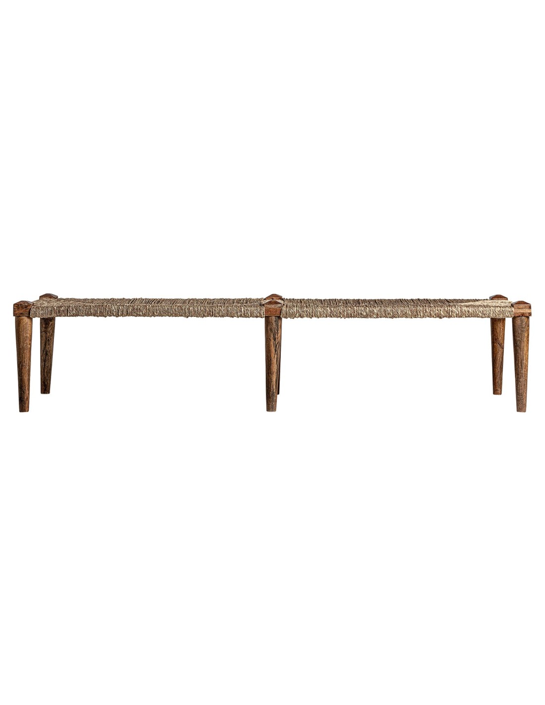 El Banco Tassarolo destaca por su estructura en yute natural, un material resistente y con carácter propio, combinado con detalles de madera de mango que aportan calidez y personalidad. Su diseño sencillo y natural hace que se integre con facilidad en ambientes modernos, rústicos o minimalistas.