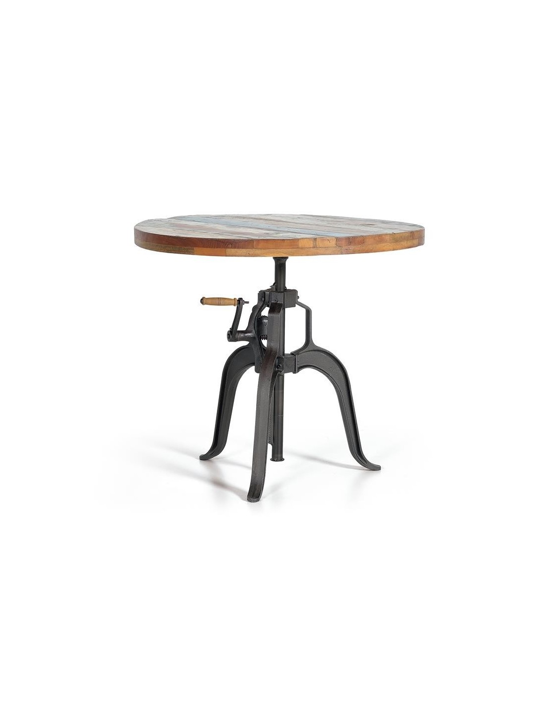 La mesa elevable en madera reciclada de Giner y Colomer combina diseño, sostenibilidad y funcionalidad. Su estructura en hierro y su acabado multicolor único la convierten en una pieza ideal para salones modernos, lofts industriales o espacios con estilo ecléctico.