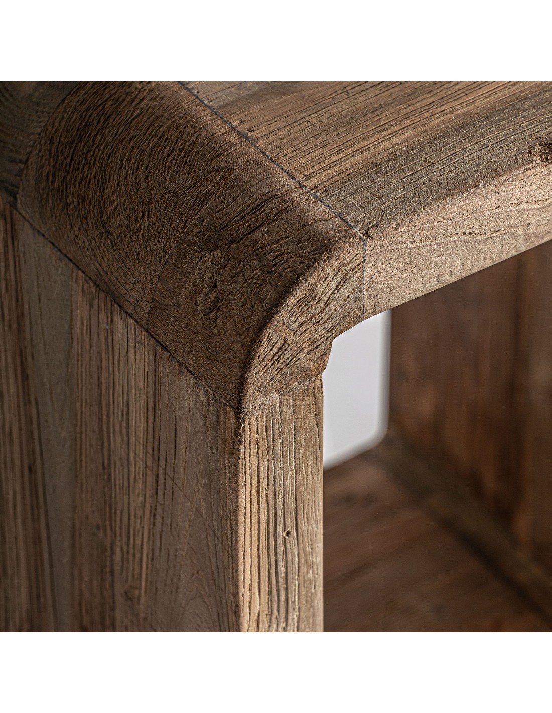 MESA AUXILIAR CORBA, EN COLOR MARRÓN NATURAL, DE ESTILO COLONIAL. FABRICADO EN MADERA DE TEKA RECICLADA.