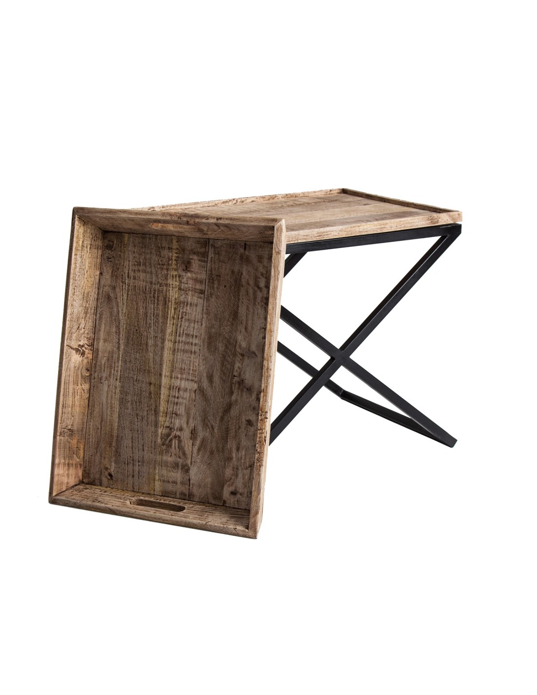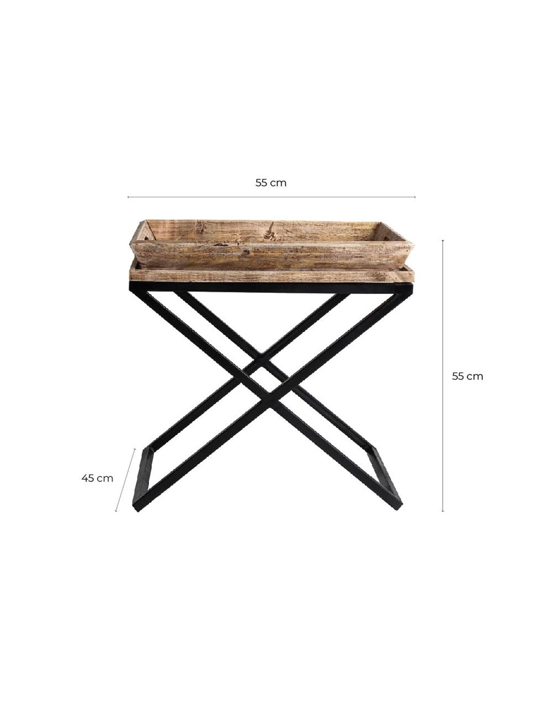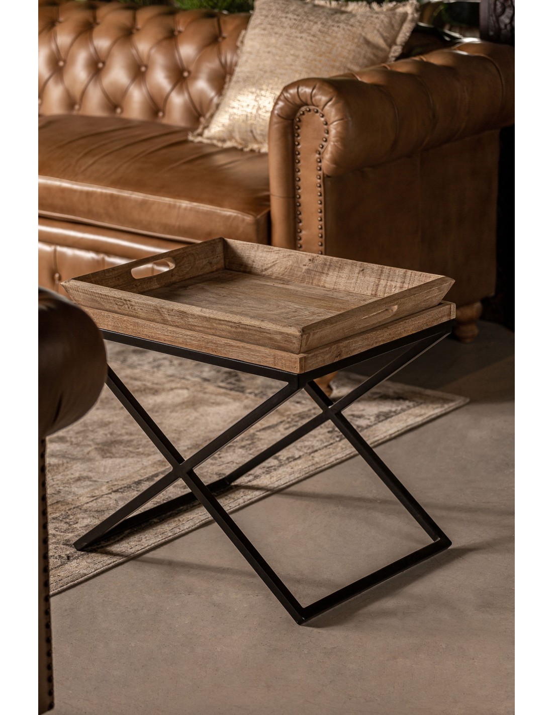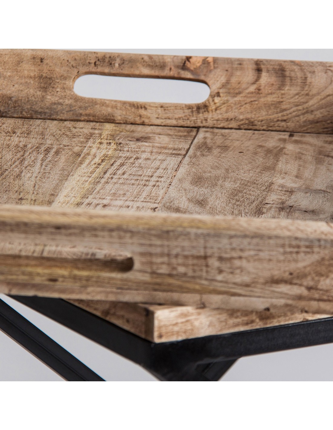 MESA AUXILIAR NEWAK, EN COLOR NEGRO/NATURAL ENVEJECIDO, DE ESTILO INDUSTRIAL. FABRICADO EN MADERA DE MANGO, COMBINADO CON HIERRO.
