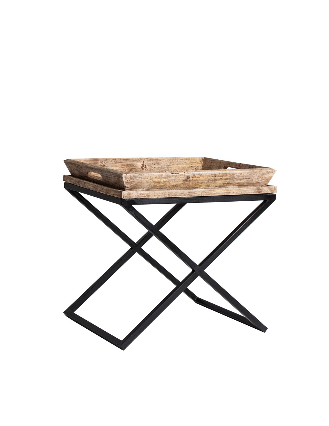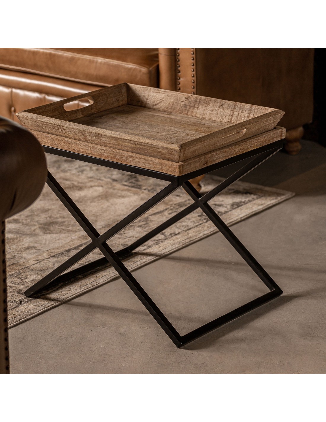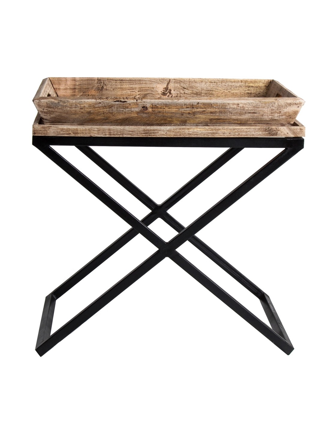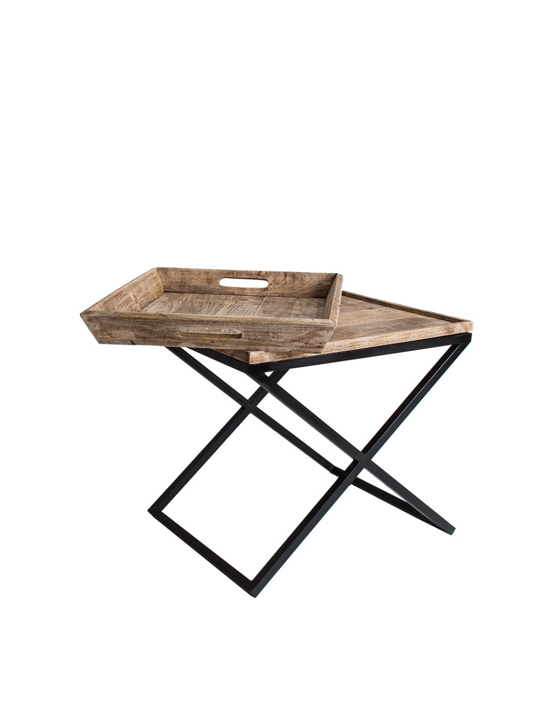 MESA AUXILIAR NEWAK, EN COLOR NEGRO/NATURAL ENVEJECIDO, DE ESTILO INDUSTRIAL. FABRICADO EN MADERA DE MANGO, COMBINADO CON HIERRO.