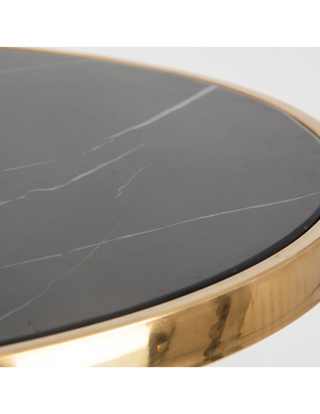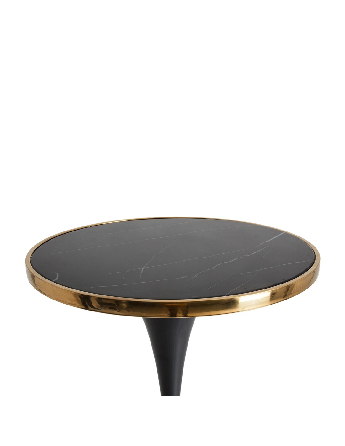MESA BAR THAN, DE ESTILO ART DECO. FABRICADO EN HIERRO, EN COLOR NEGRO BRILLO, COMBINADO CON MÁRMOL SINTÉTICO, EN COLOR ORO Y ACERO. PRODUCTO DESMONTABLE.