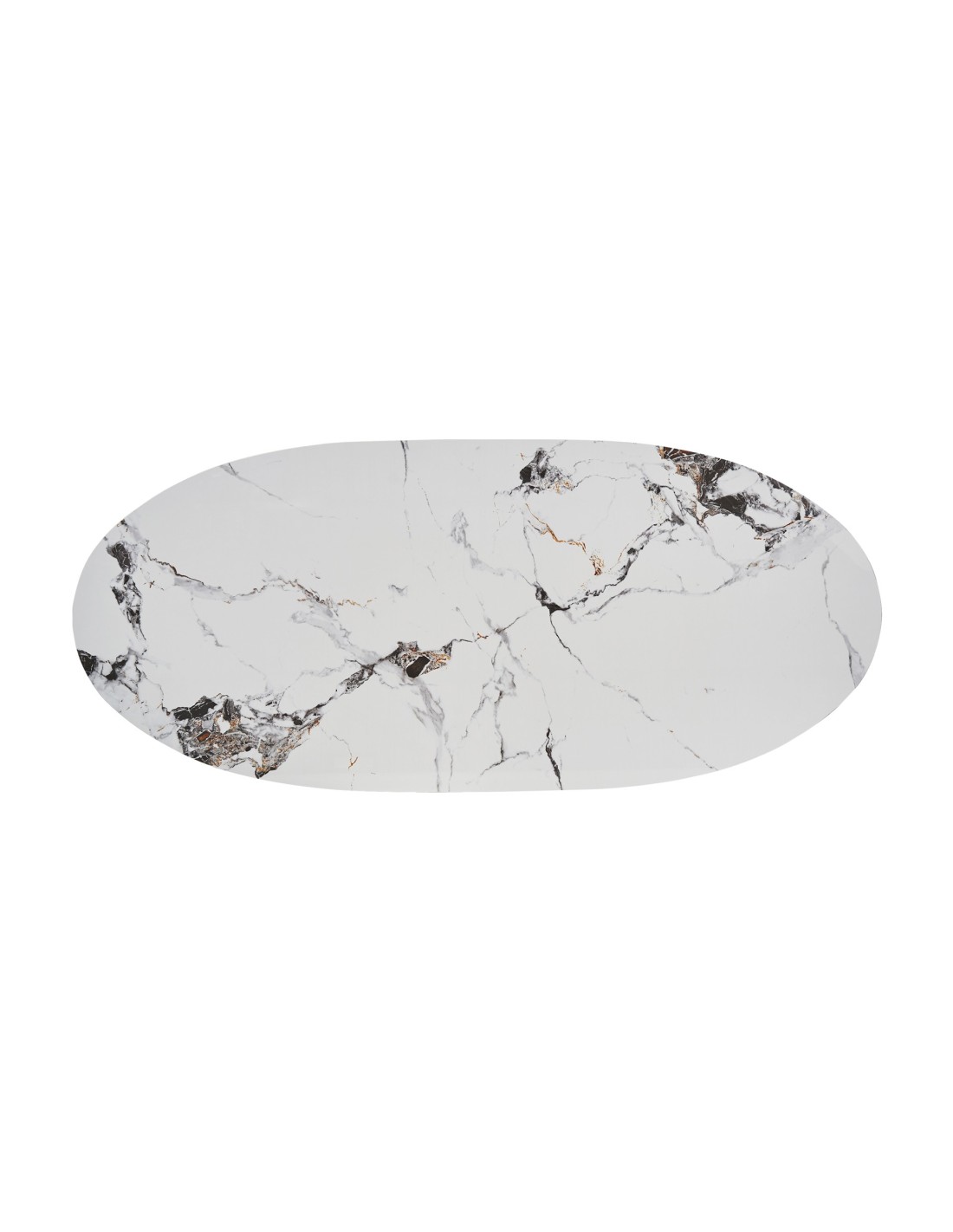 MESA COMEDOR LAGGAN, EN COLOR BLANCO/MARRÓN, DE ESTILO ART DECO. FABRICADO EN ACERO, COMBINADO CON MÁRMOL SINTÉTICO. PRODUCTO DESMONTABLE.