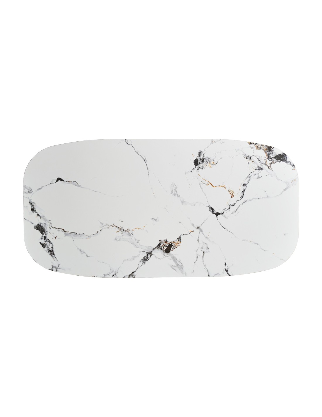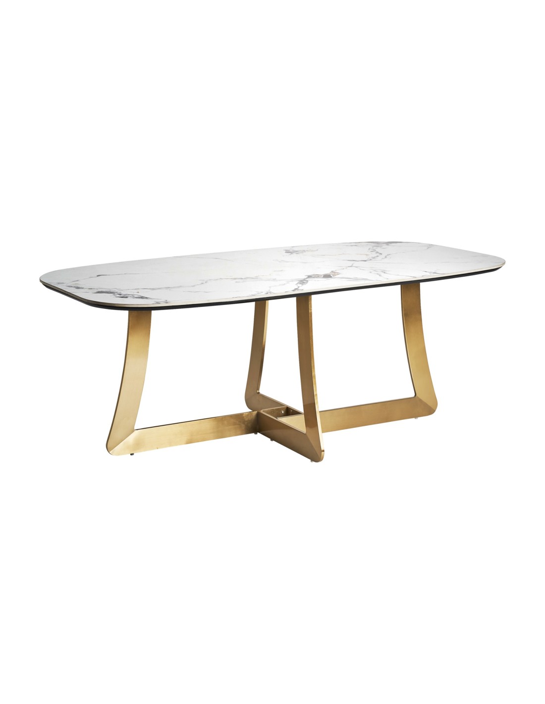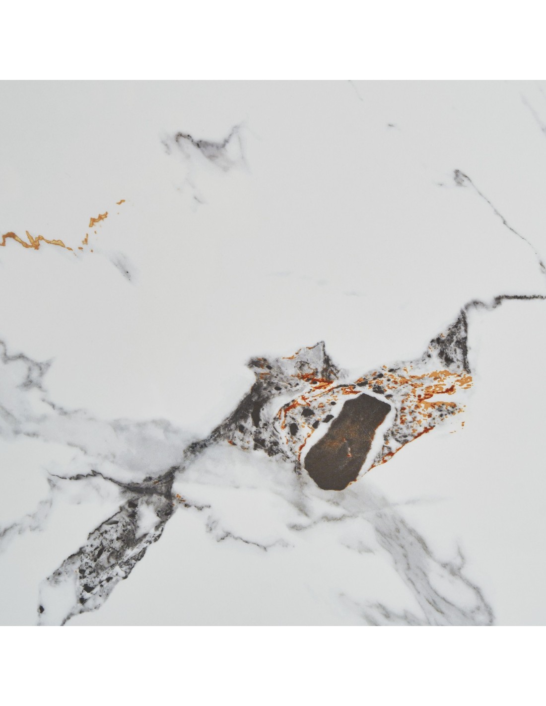 MESA COMEDOR JUSSEY, EN COLOR BLANCO/ORO, DE ESTILO ART DECO. FABRICADO EN ACERO, COMBINADO CON MÁRMOL SINTÉTICO.