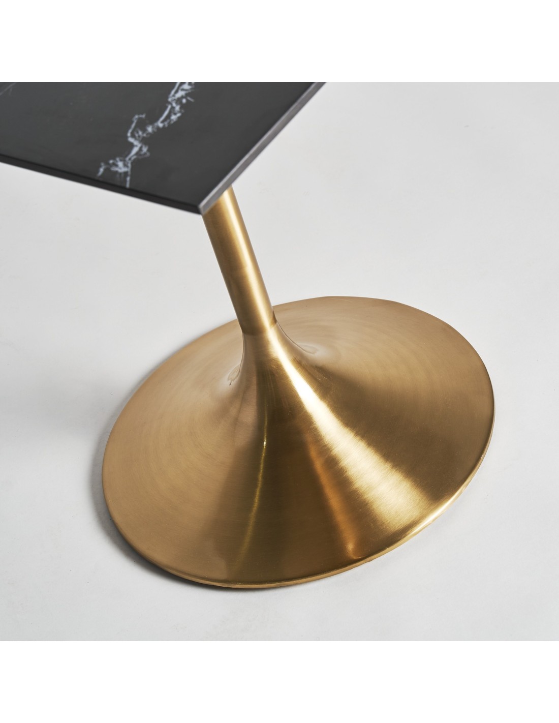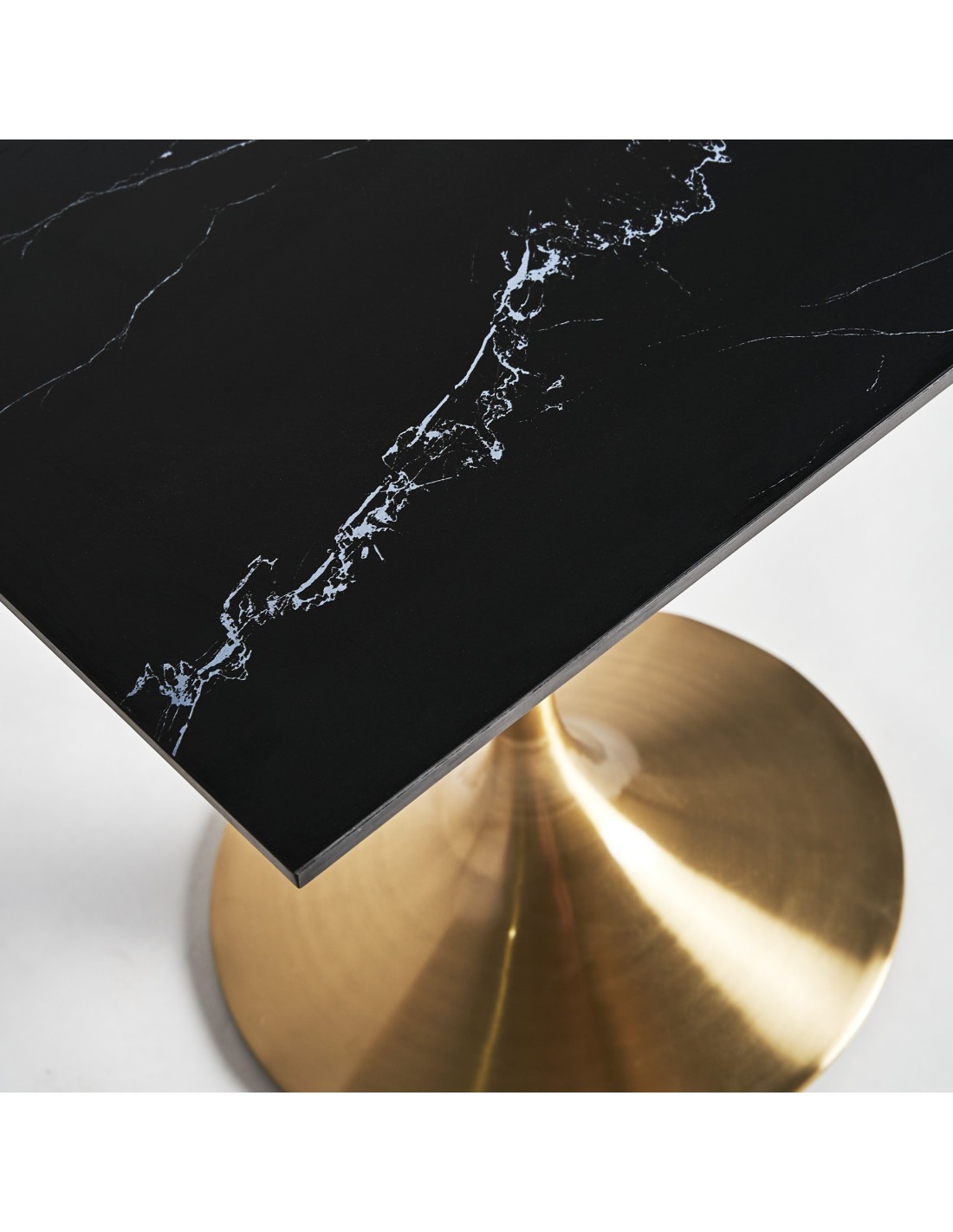 MESA BAR ULLALAND, EN COLOR ORO/NEGRO, DE ESTILO ART DECO. FABRICADO EN ACERO, COMBINADO CON MÁRMOL SINTÉTICO. PRODUCTO DESMONTABLE.