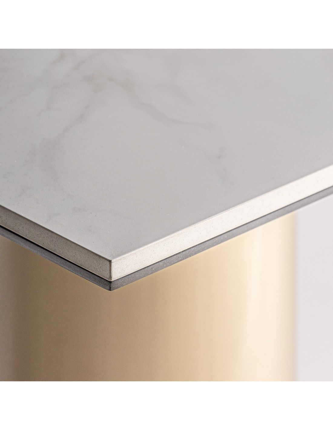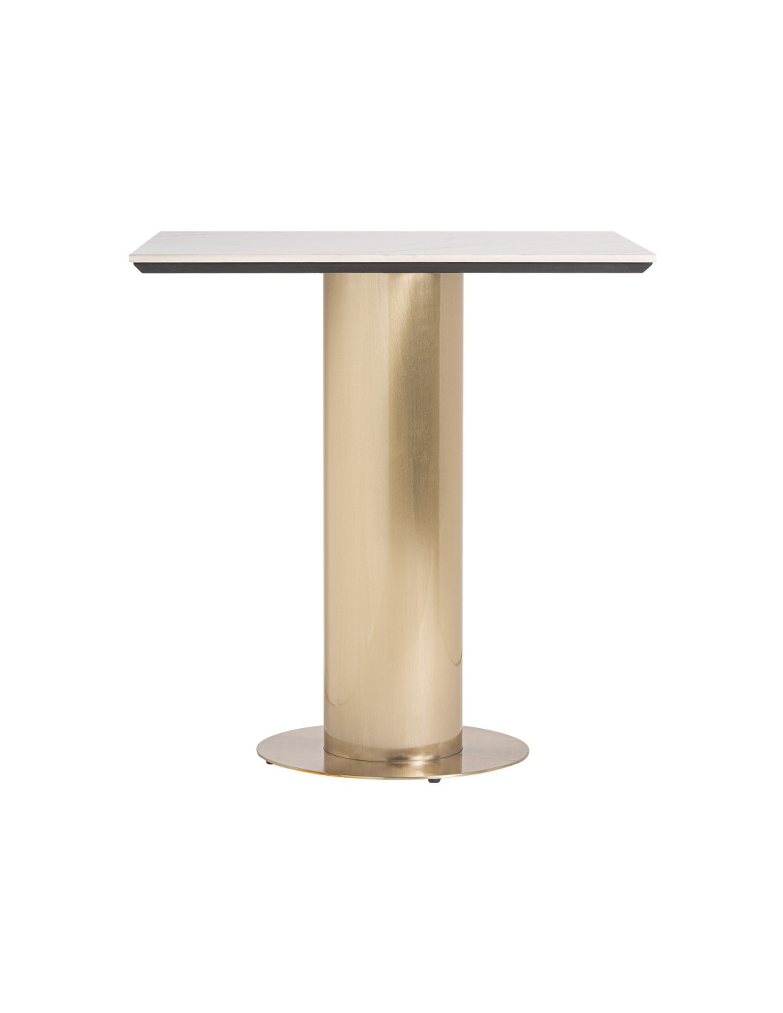 MESA BAR NAUSTDAL, DE ESTILO ART DECO. FABRICADO EN ACERO, EN COLOR BLANCO, COMBINADO CON PORCELÁNICO, EN COLOR ORO. PRODUCTO DESMONTABLE.