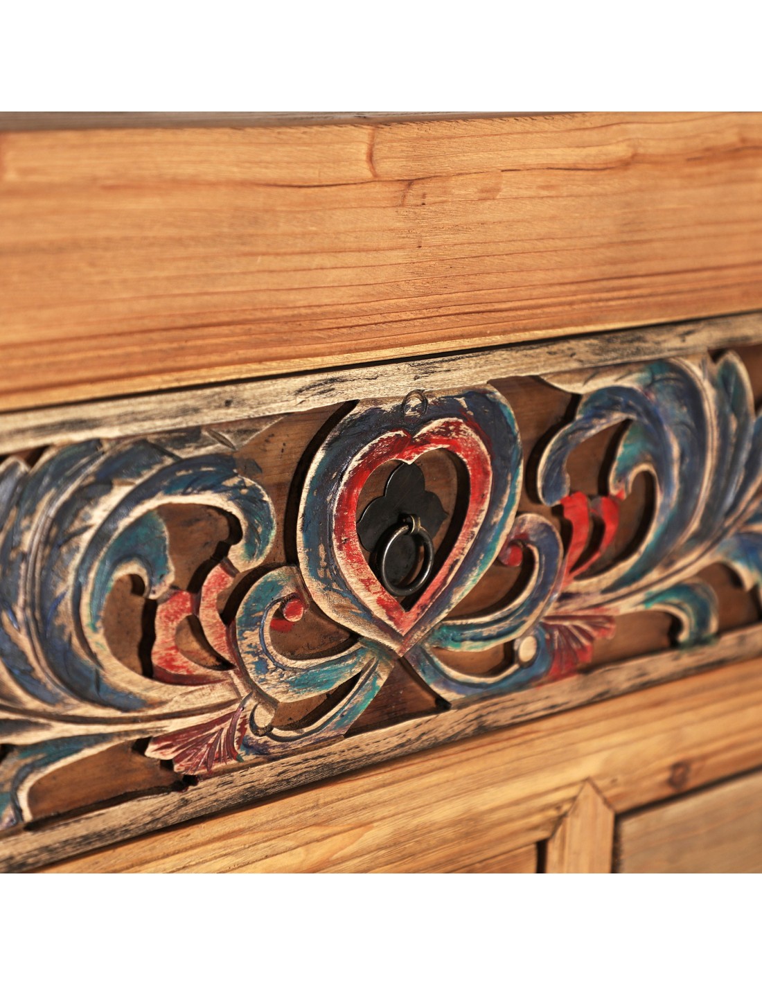APARADOR PRUTZ, DE ESTILO ORIENTAL. FABRICADO EN MADERA DE PINO RECICLADO, EN COLOR MARRÓN NATURAL.