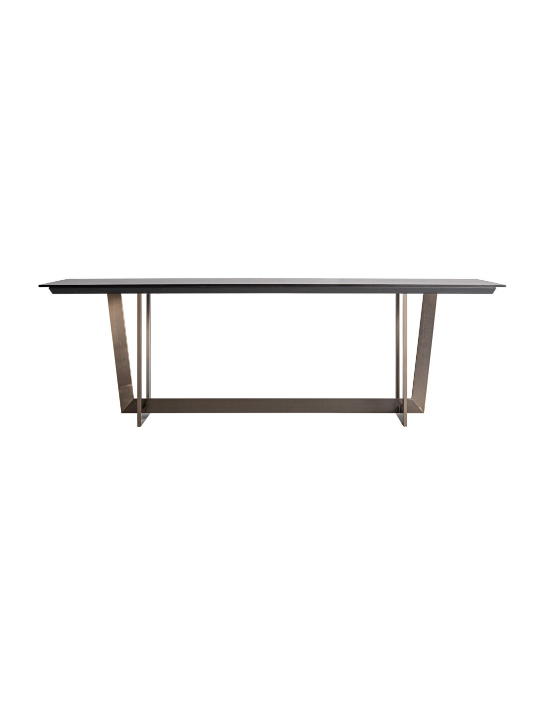 MESA COMEDOR TREMP, EN COLOR NEGRO, DE ESTILO ART DECO. FABRICADO EN PIEDRA, COMBINADO CON ACERO INOXIDABLE. PRODUCTO DESMONTABLE.