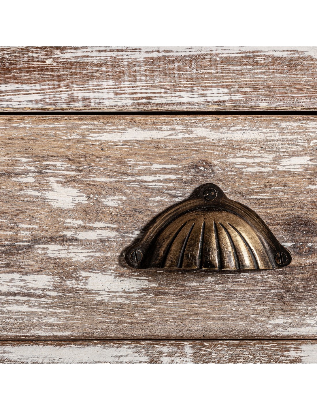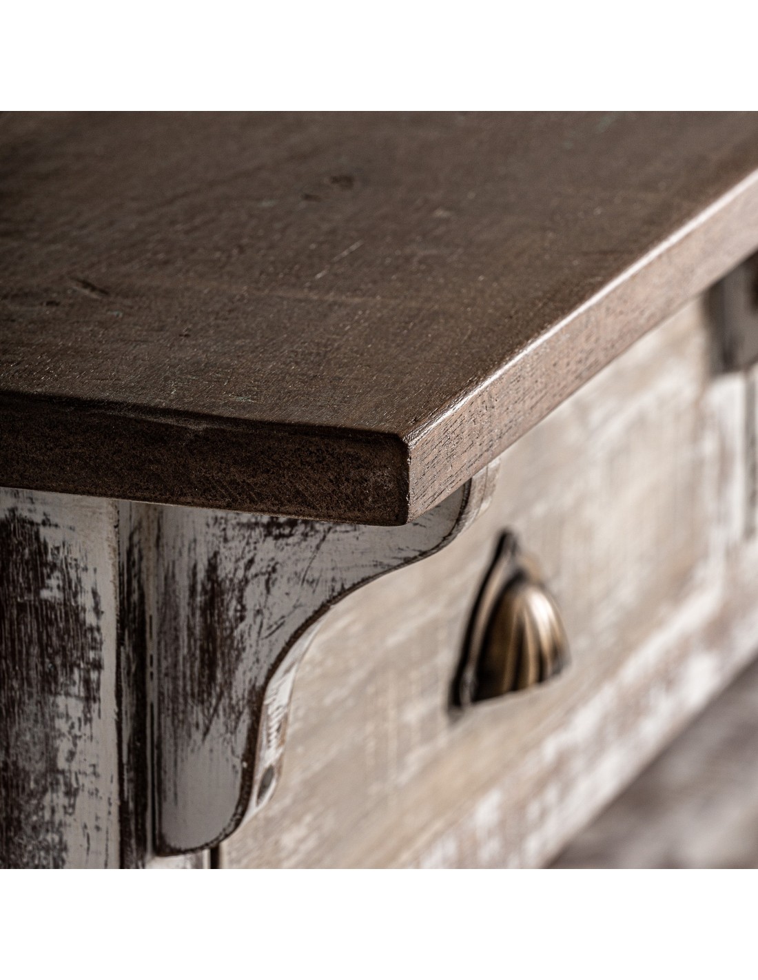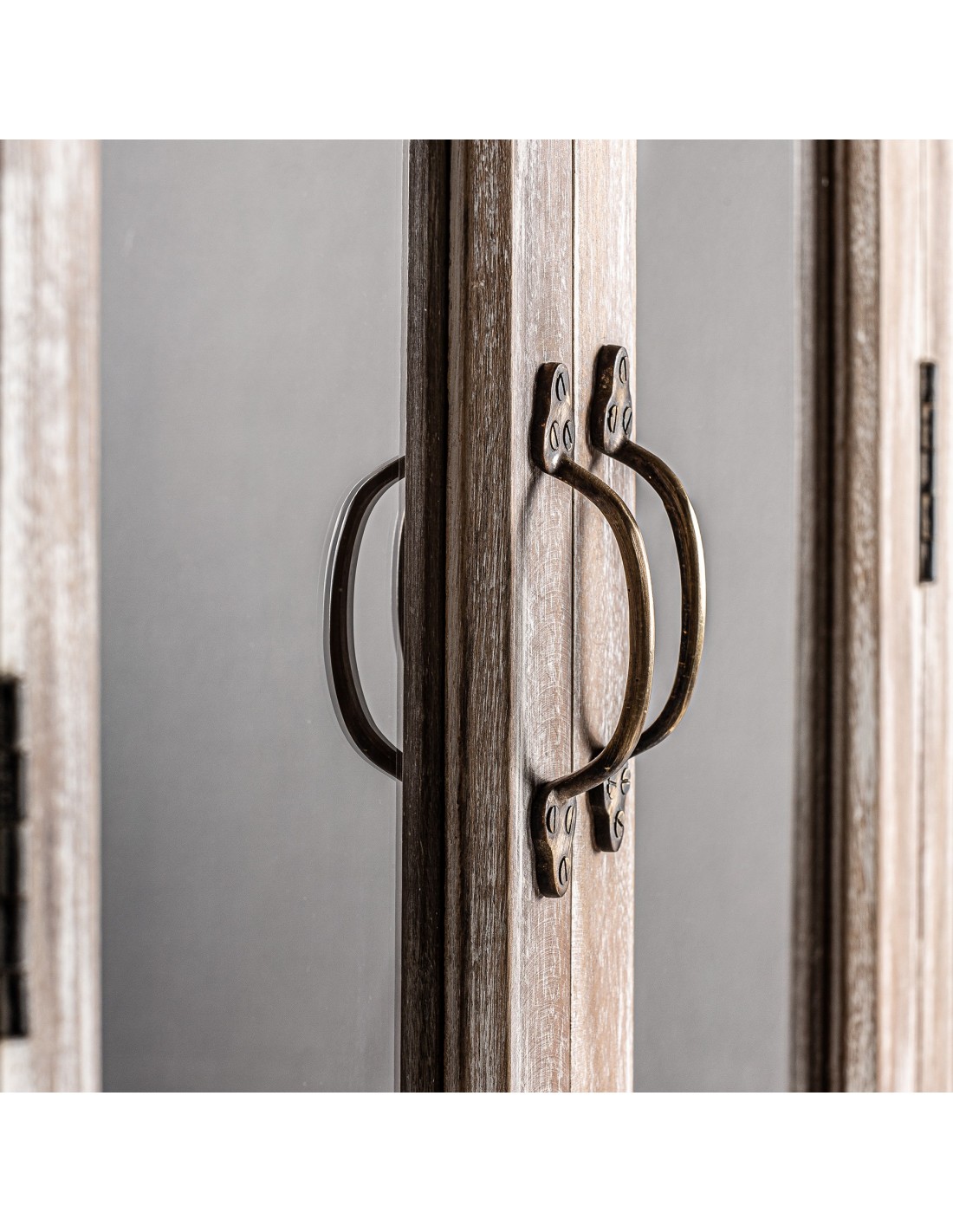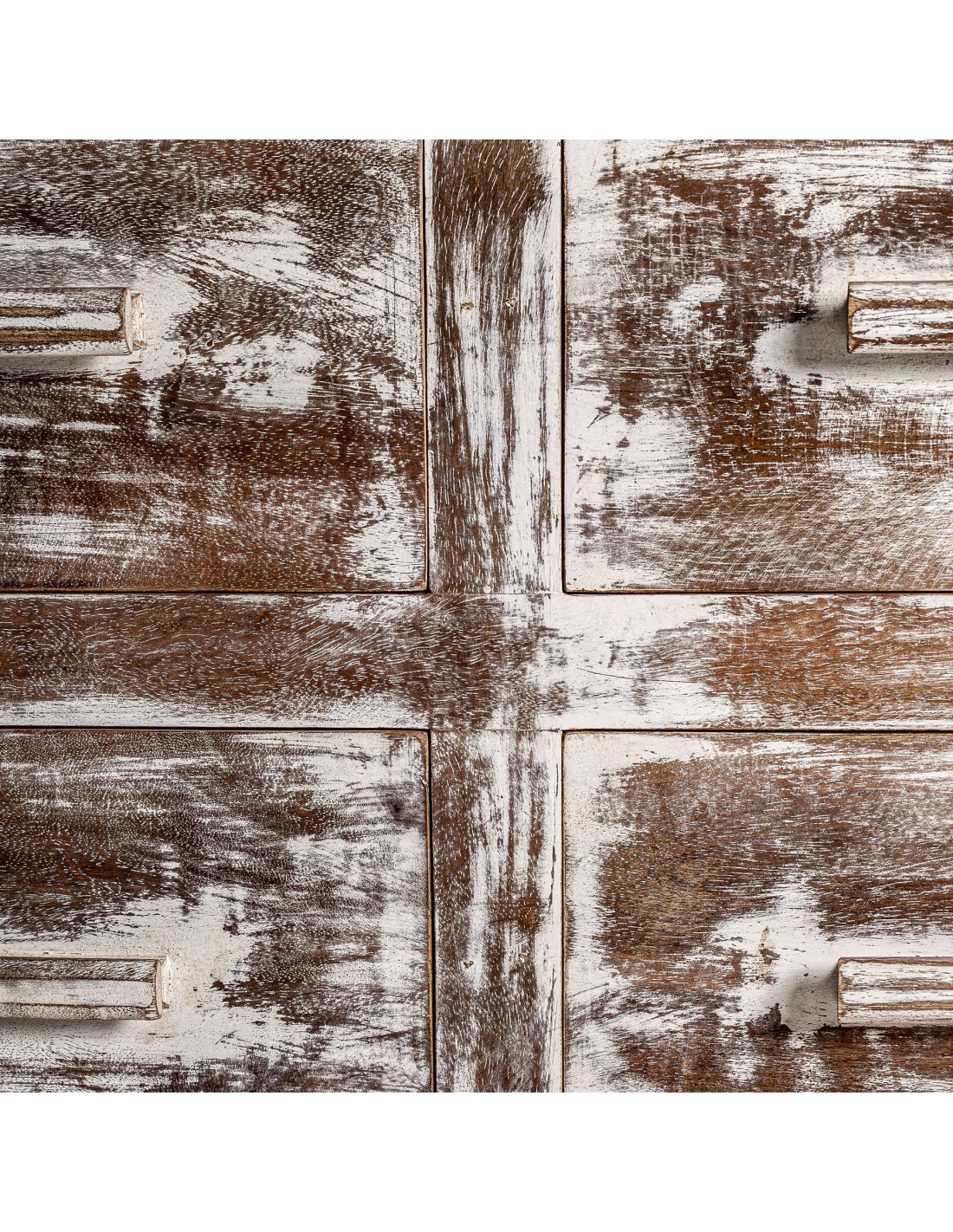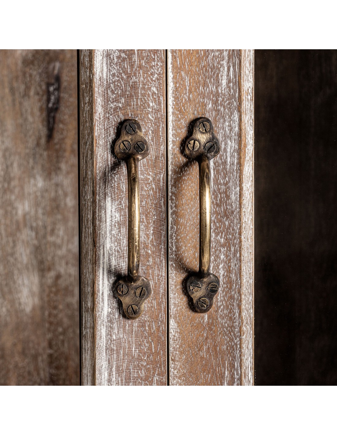 VITRINA MALUNG, EN COLOR BLANCO/MARRÓN ENVEJECIDO, DE ESTILO RÚSTICO. FABRICADO EN MADERA DE MANGO, COMBINADO CON CRISTAL. PRODUCTO APILABLE.
