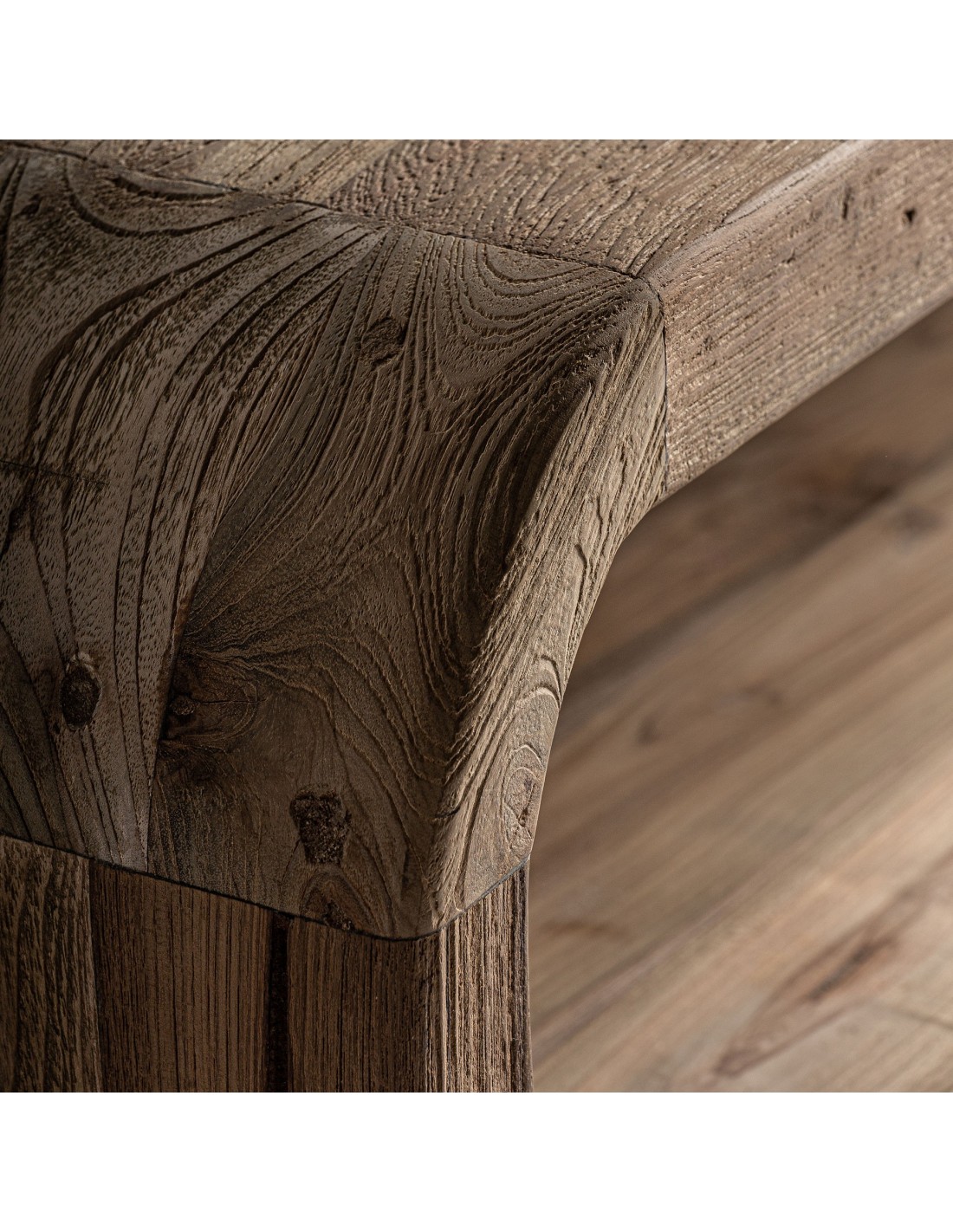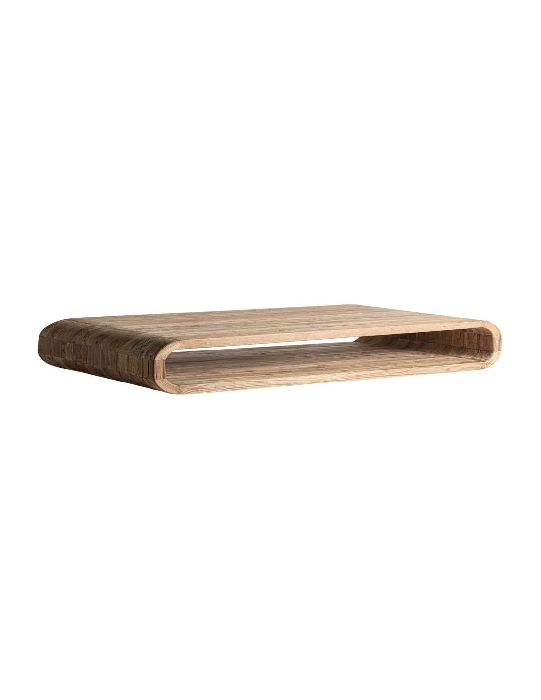 MESA DE CENTRO CORBA, EN COLOR MARRÓN NATURAL, DE ESTILO COLONIAL. FABRICADO EN MADERA DE TEKA RECICLADA.