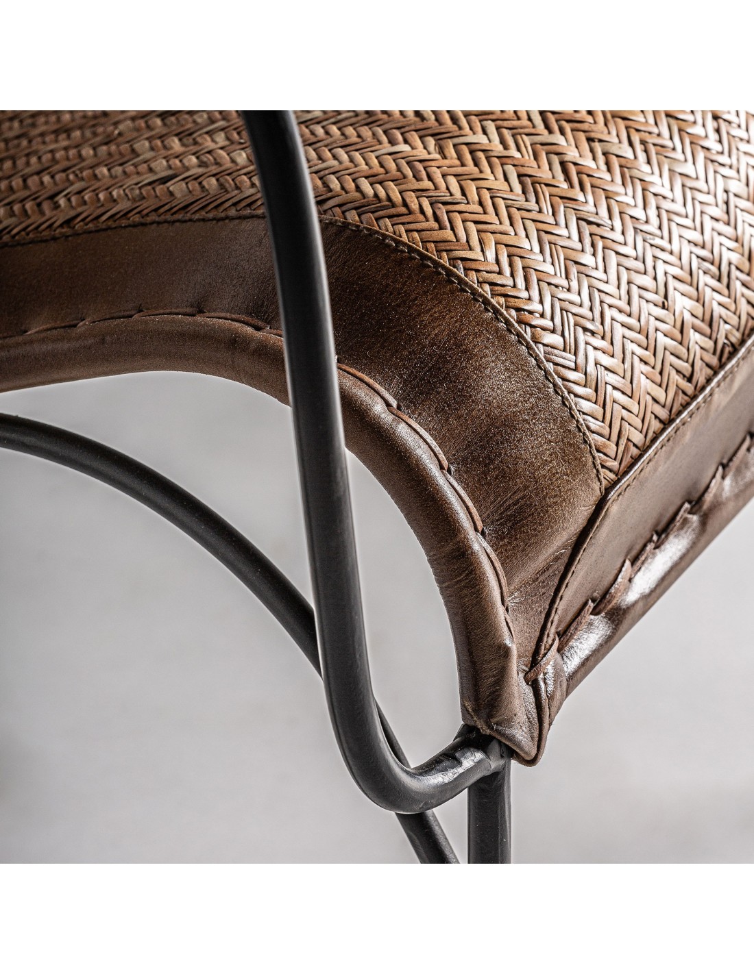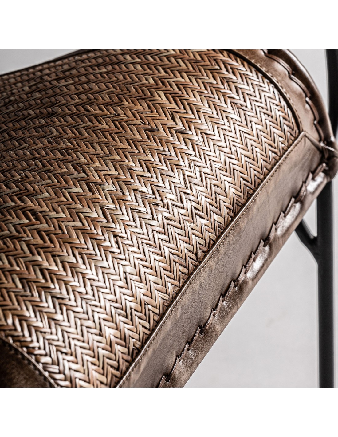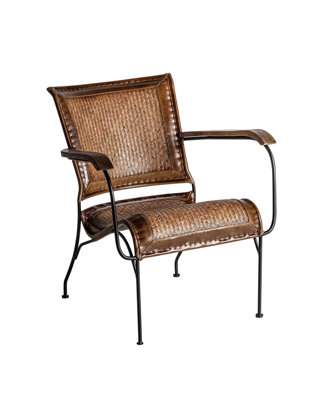 SILLA KROKOM, EN COLOR MARRÓN, DE ESTILO VINTAGE. FABRICADO EN PIEL, COMBINADO CON HIERRO Y RATÁN.